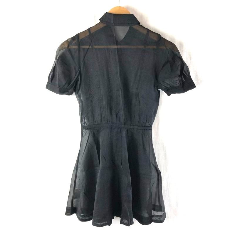 スナイデル Snidel チュニック シースルー素材 半袖 ウエストゴム ボタン 黒 Fサイズ 2025092100122