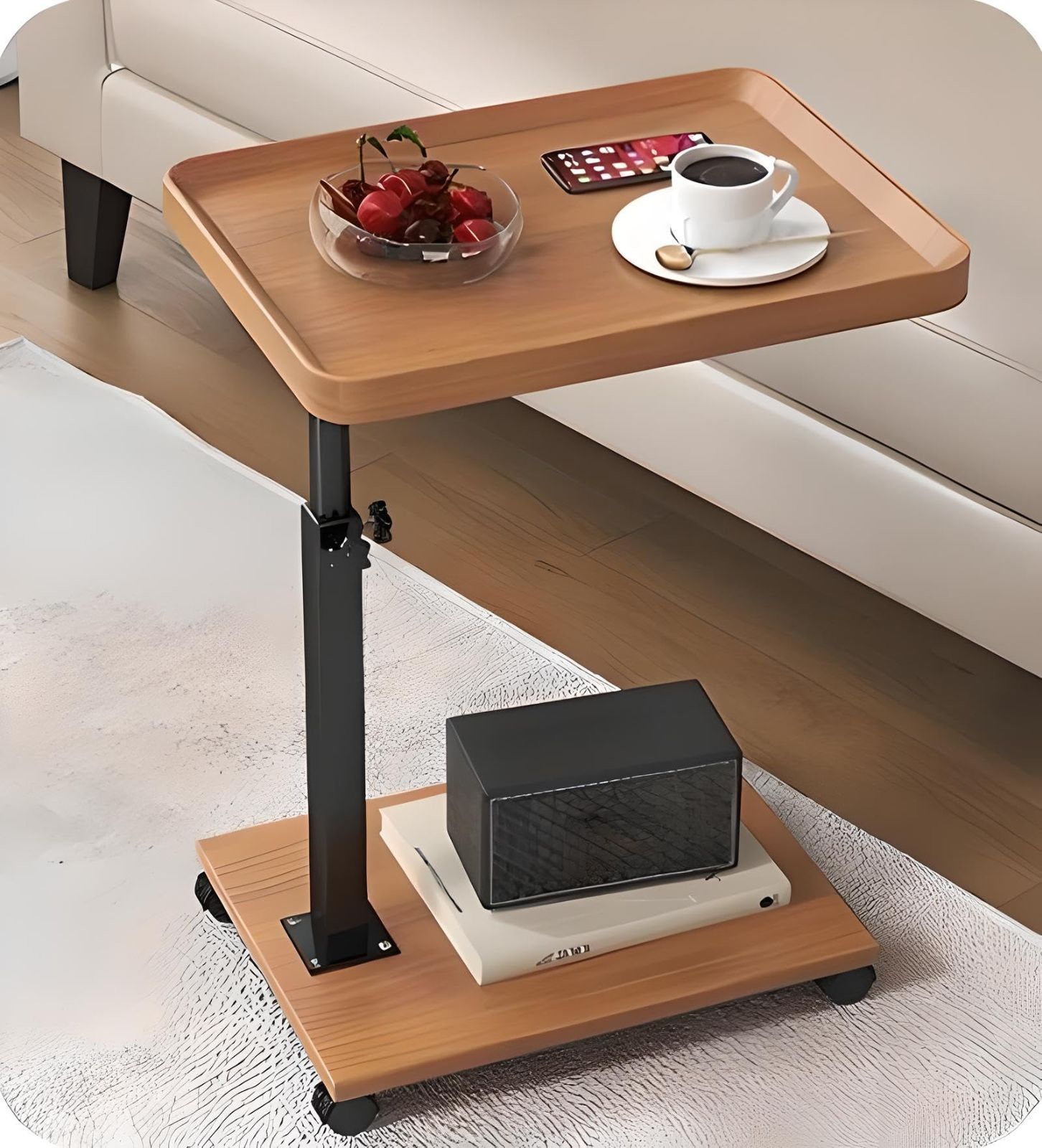 Color:ナチュラル 40*30*45~85cm ?TAIVINN サイドテーブル キャスター付き ベッドサイド テーブル 昇降式 木目調 簡易テーブル コの字型 高さ調節 移動便利 小さい 一人暮らし 食卓 小型 (ナチュラル 40*30*45~85cm)