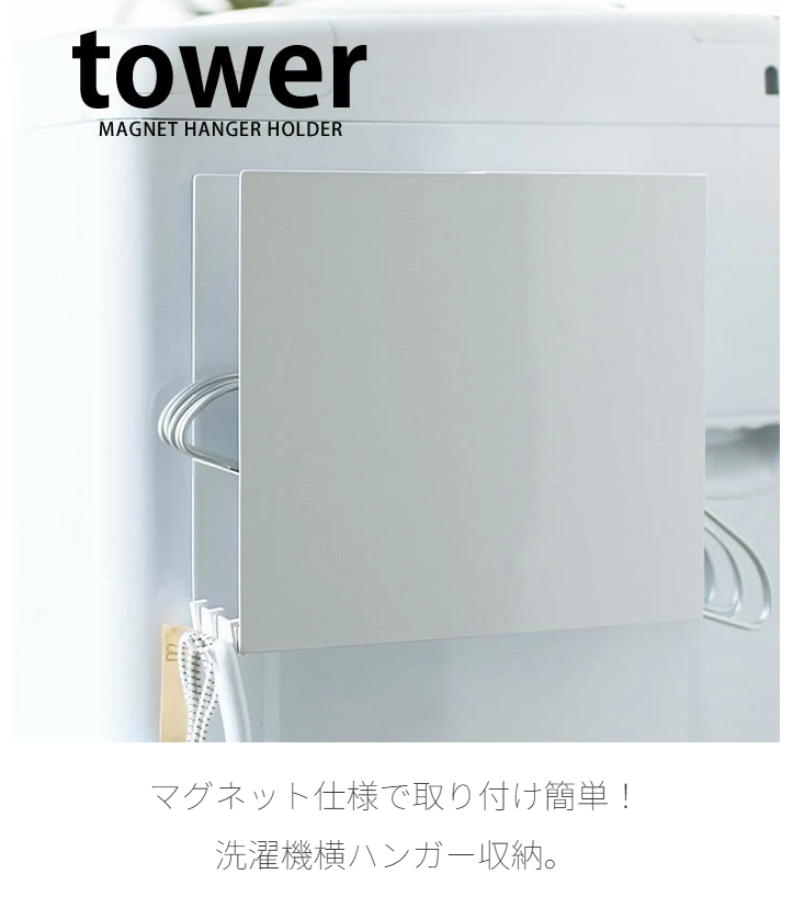 洗濯機横マグネットハンガーホルダー タワー tower 洗濯ハンガー 収納 洗濯機 ラック マグネット式 洗濯ハンガー置き場 物干しハンガー おしゃれ シンプル ランドリー収納 白 黒 yamazaki 山崎実業 YAMAZAKI ヤマジツ TOWER