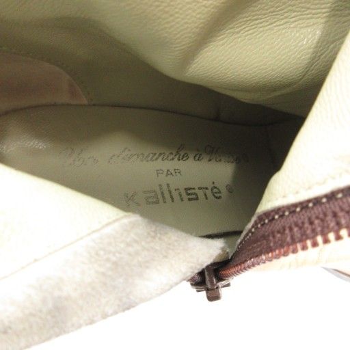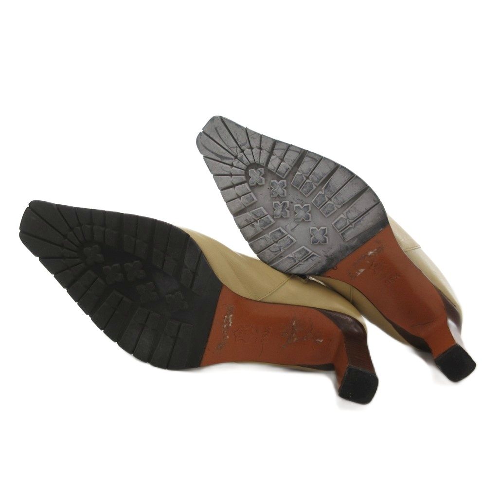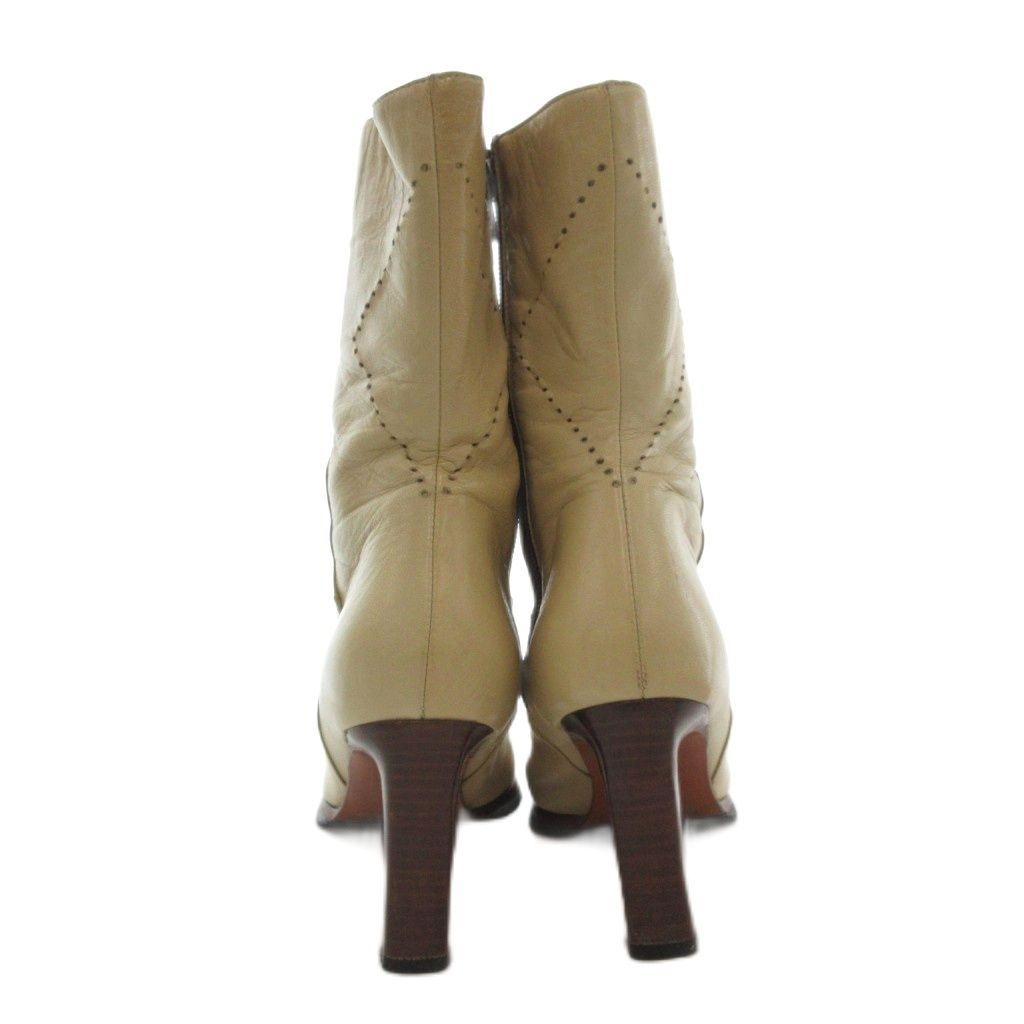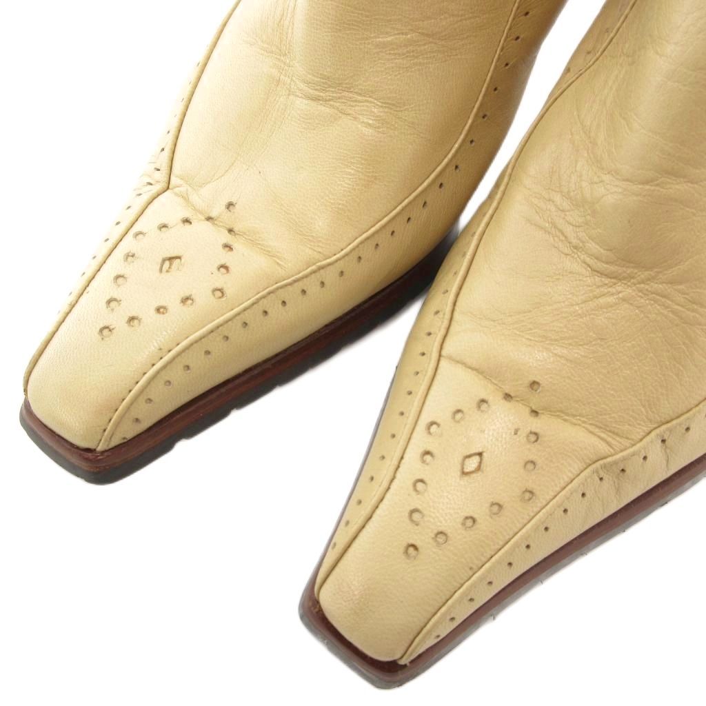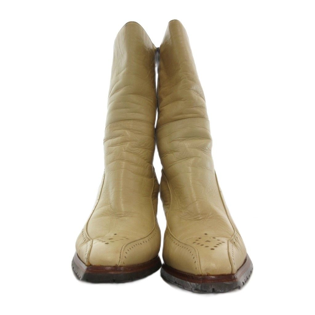 【商品名】kalliste ブーツ レザー 本革 36.5 ベージュ スクエアトゥ ブローグ ミドル丈 ヒール サイドジップ /AE