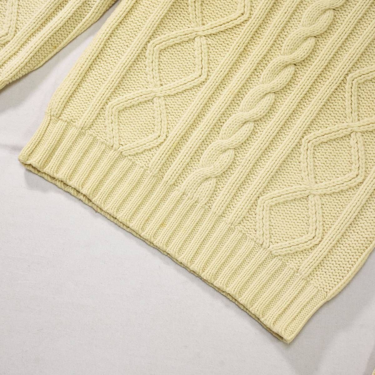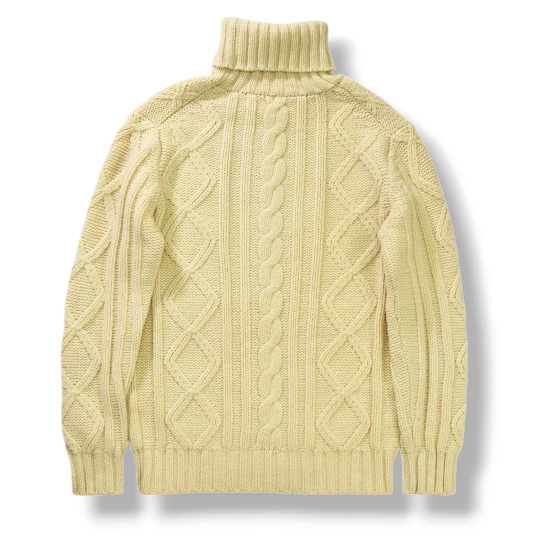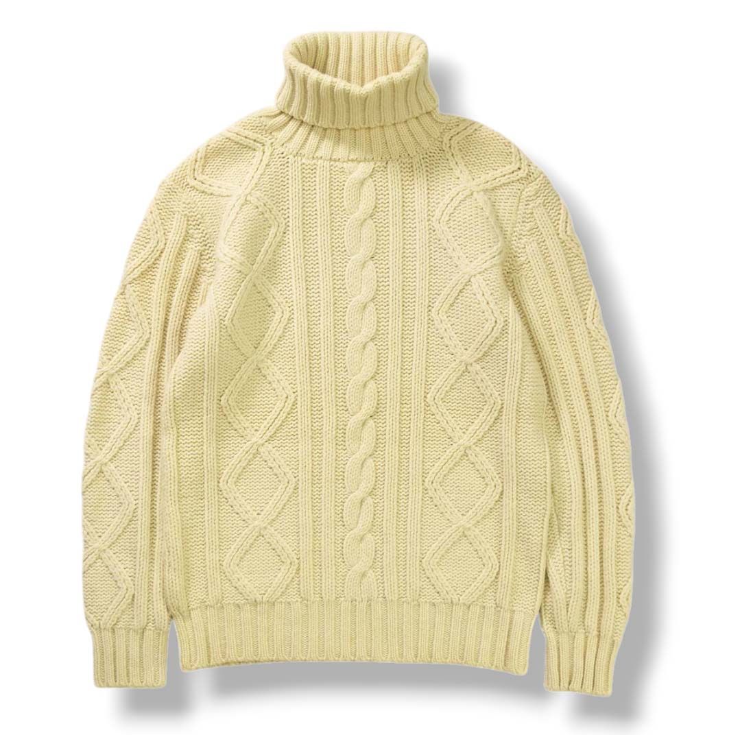 立体的なケーブル編み(アラン模様)は、漁師の安全や豊穣を願う伝統的モチーフをベースにしながら、VANらしい都会的な解釈で仕立てられています。