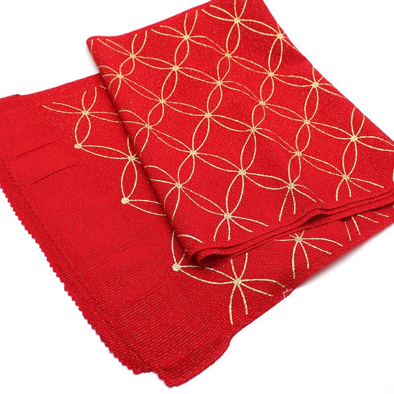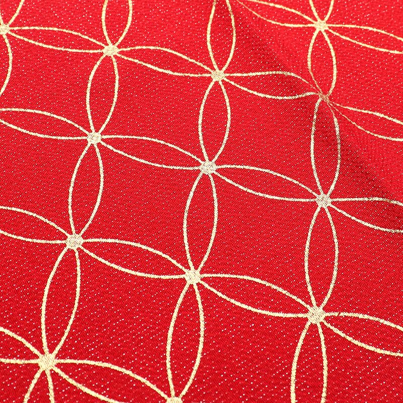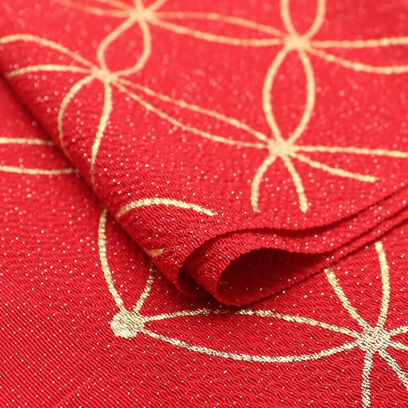 赤地に、金で七宝柄が表現された華やかな帯揚げです。銀糸が織り込まれており、キラキラと薄い輝きがあり、華やかな雰囲気が素敵です。