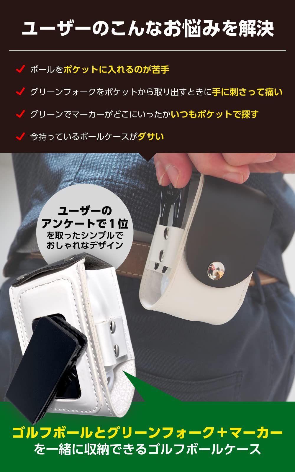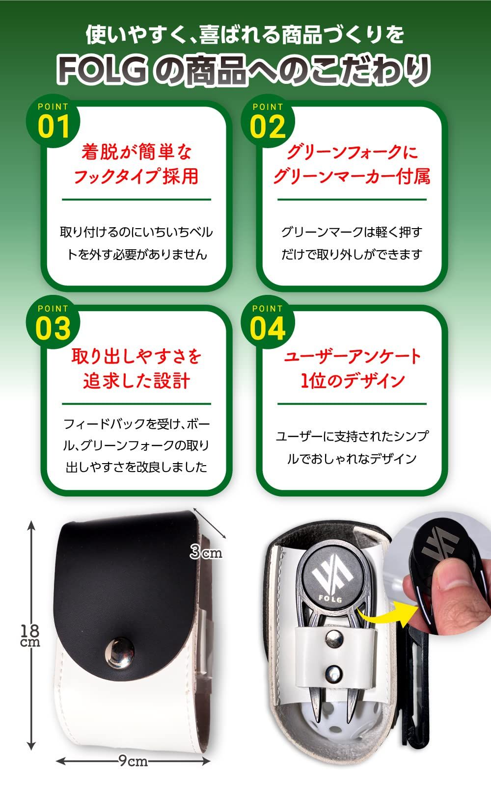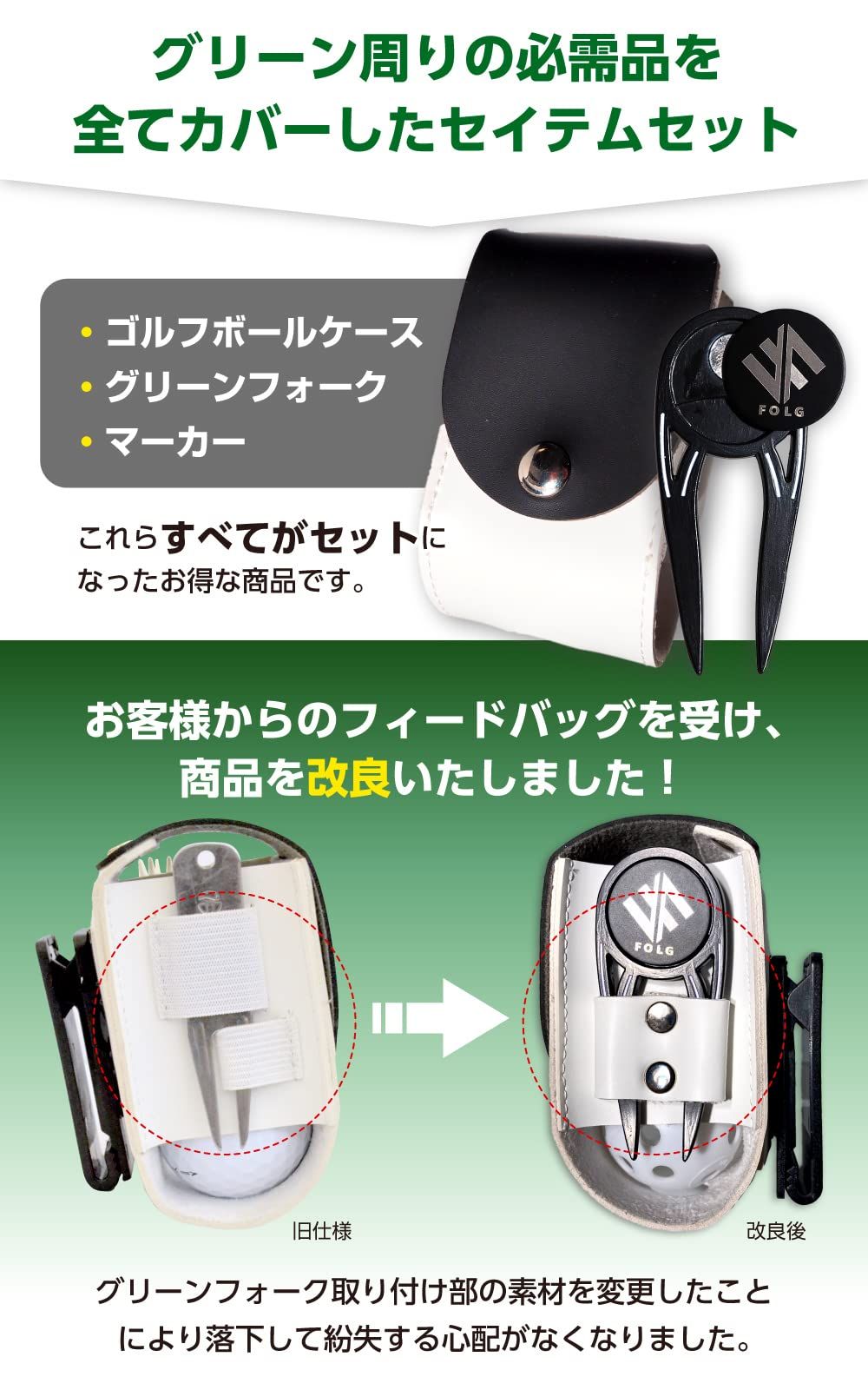 FOLG ゴルフボールケース グリーンフォーク マーカー セット 【ベルトに簡単取付】 ボール2個収納 PUレザー (グリーンフォークセット)