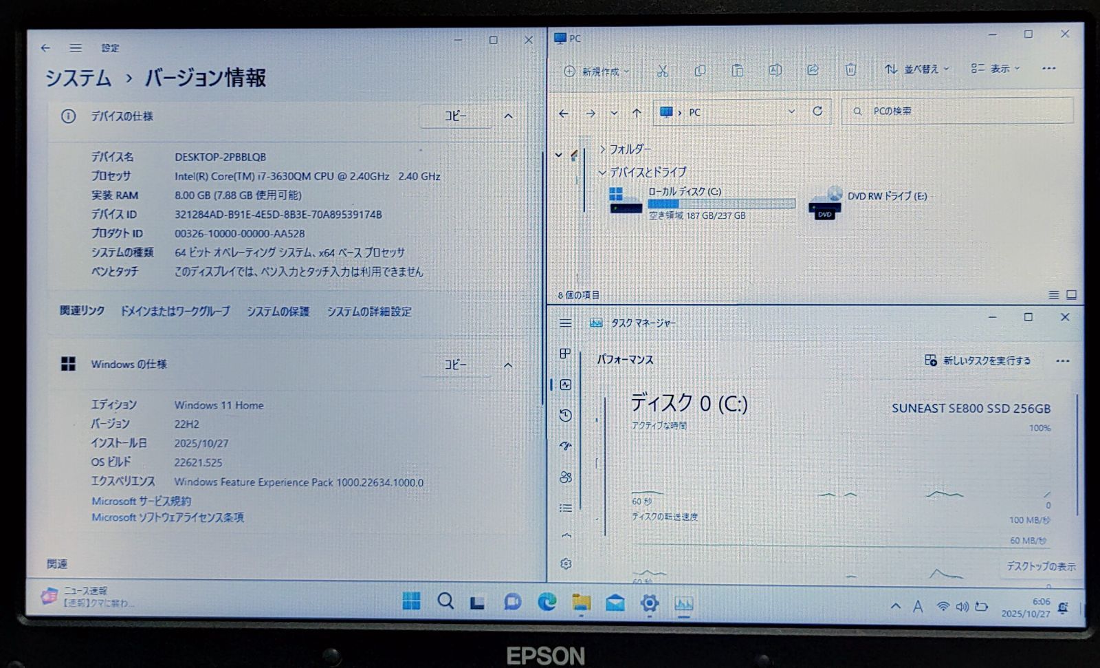 ・OS:Windows 11 Home 64bit(ライセンス認証済み)