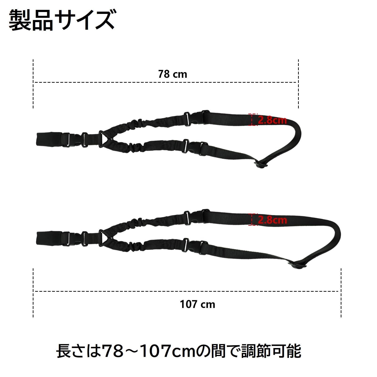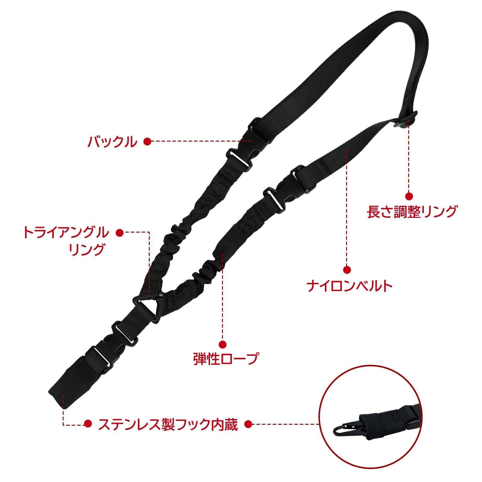 koundeneko サバゲー スリング 単点支持 両手フリー 軽量 タクティカル スリング 簡単装着 ワンタッチ脱着可能 ライフル エアガン用スリング 弾性ゴム アウトドア用 スリングベルト 長さ135-175cm調整可能