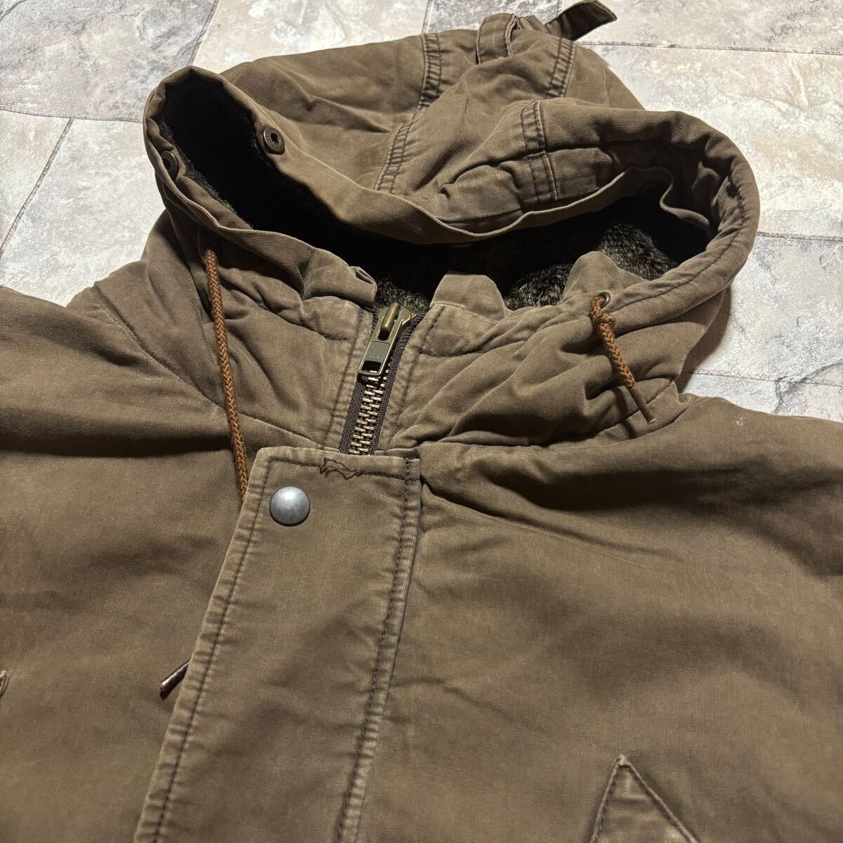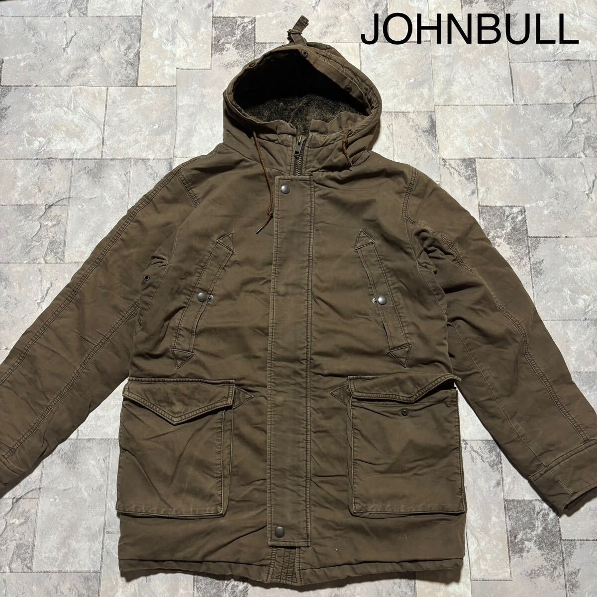 JOHNBULL ジョンブル モッズコート ミリタリー フード 裏地ボア ヴィンテージ 加工 ブラウン サイズM 玉FS1688