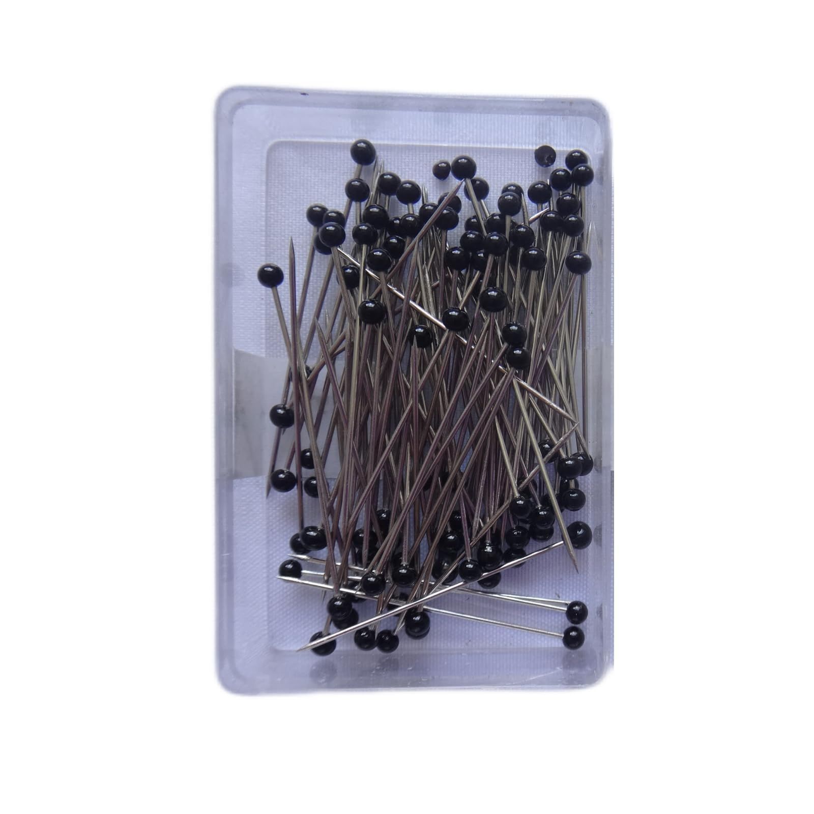 まち針 かわいい 小玉 耐熱 まちばり パッチワーク ソーイング用品 クラフト 手作り キルティング 待ち針 100本入り ブラック