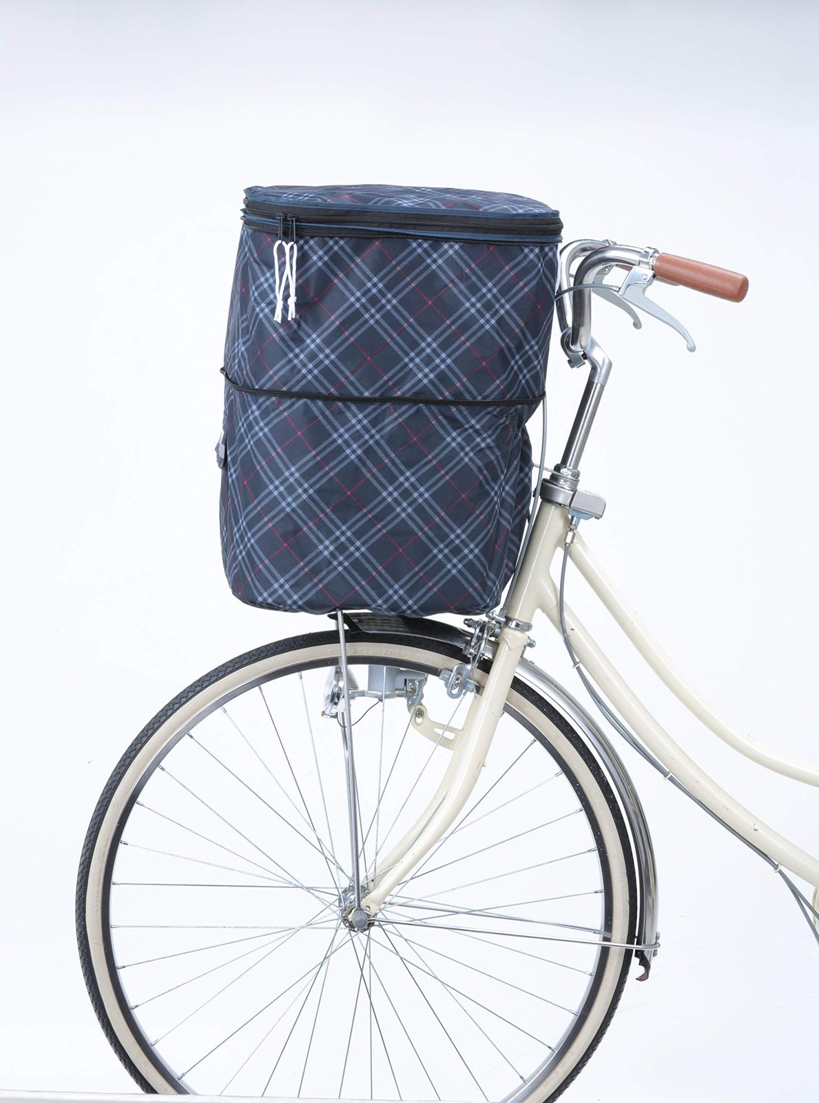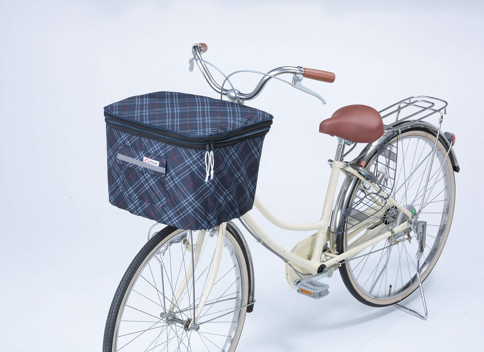 川住製作所 2段式前カゴカバー ネイビーチェック 両開き式 KW-256FR