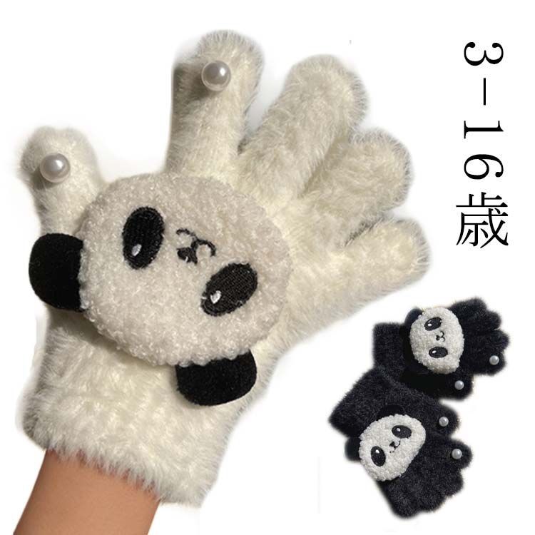 【送料無料】手袋 キッズ 女の子 こども手袋 子供 用 グローブ 3-9歳 10-16歳 防寒 冬 かわいい ふわふわ 暖かい あったかい 動物 パンダ アニマル 保育園 幼稚園 小学生 高校生 中学#goudoudou4293