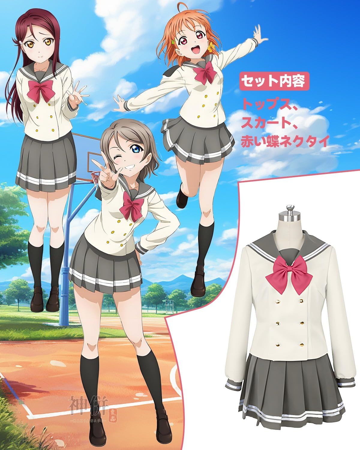※【登場キャラ】:大人気のアニメ「ラブライブ!サンシャイン!!」の主人公を原型として忠実に再現するコスプレ制服セットです。