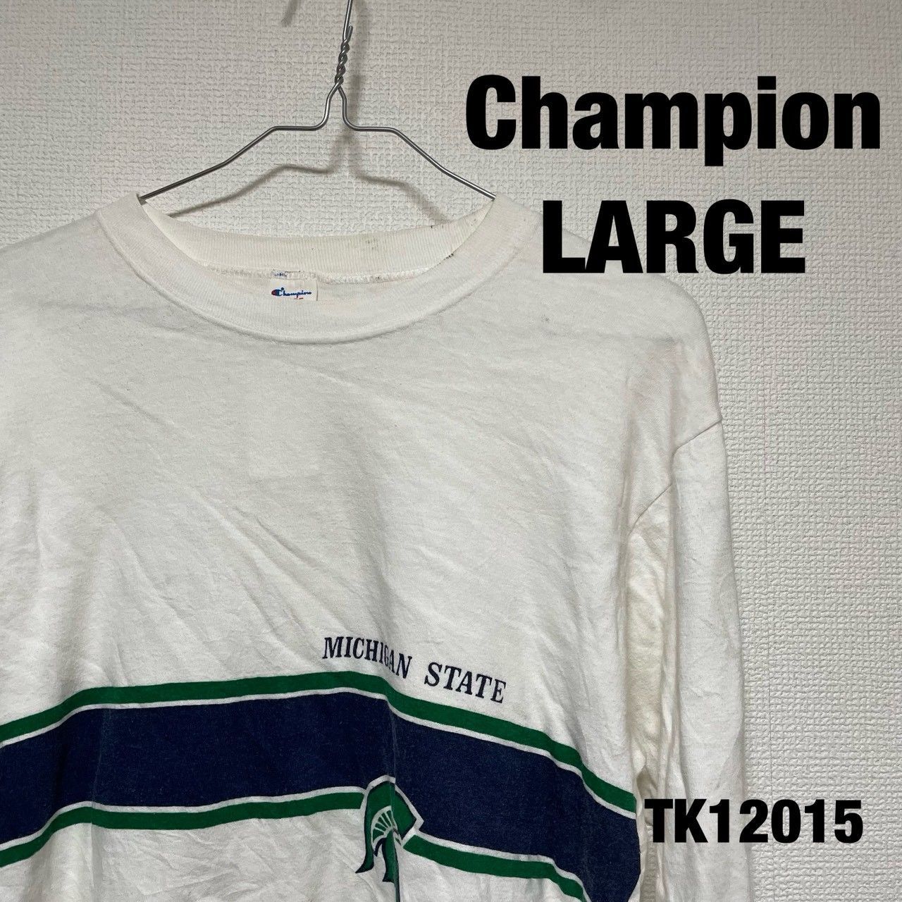 Champion USA製 Tシャツ 長袖 LARGE ホワイト ロンT ミシガン州 レディース チャンピオン RN26094 古着 TK12015