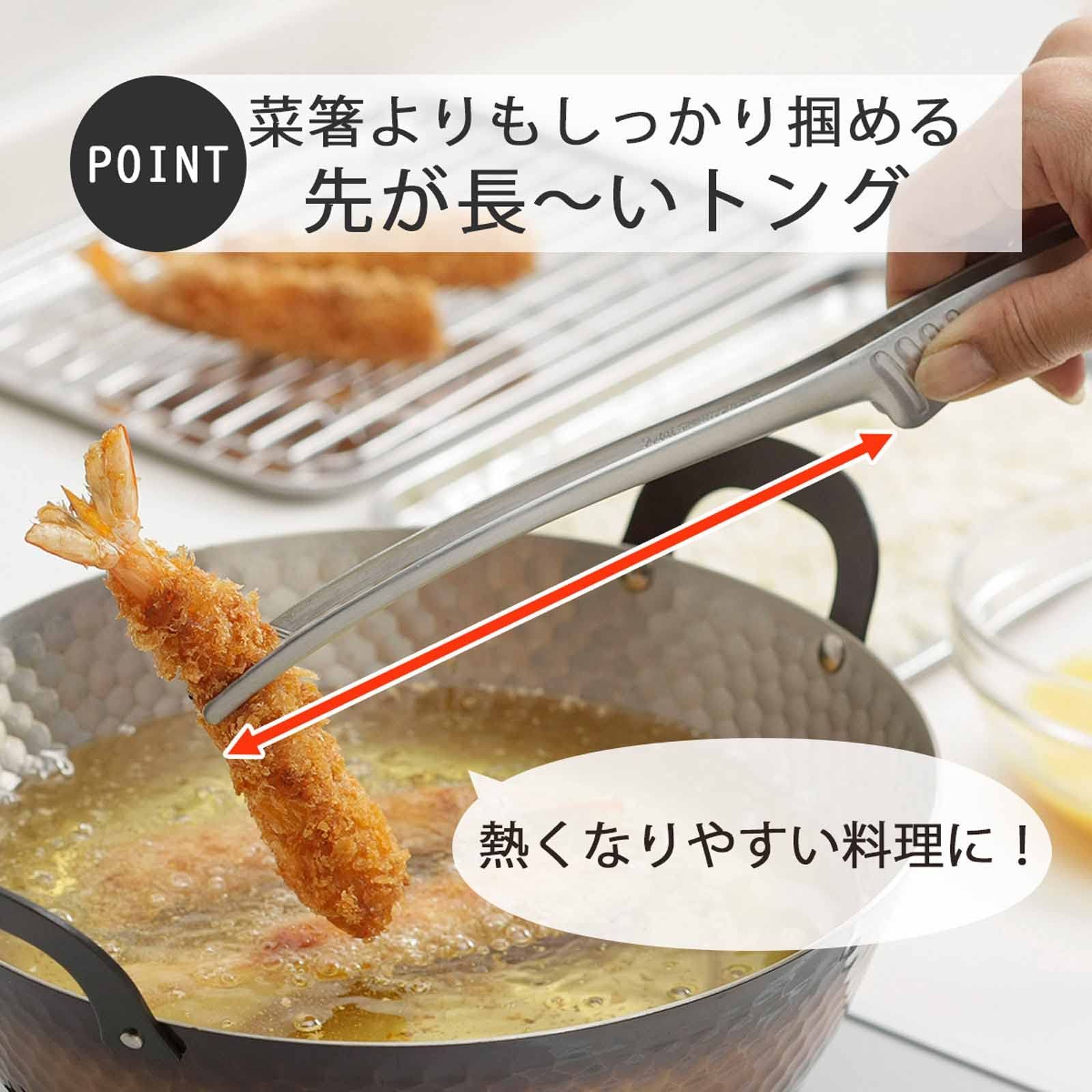 下村企販 菜箸より使いやすい お助けトング 大 【日本製】 食洗器対応 先端が浮く スリムで掴みやすい すべり止め加工 焼肉トング ステンレス 全長29cm ママクック 燕三条 43142