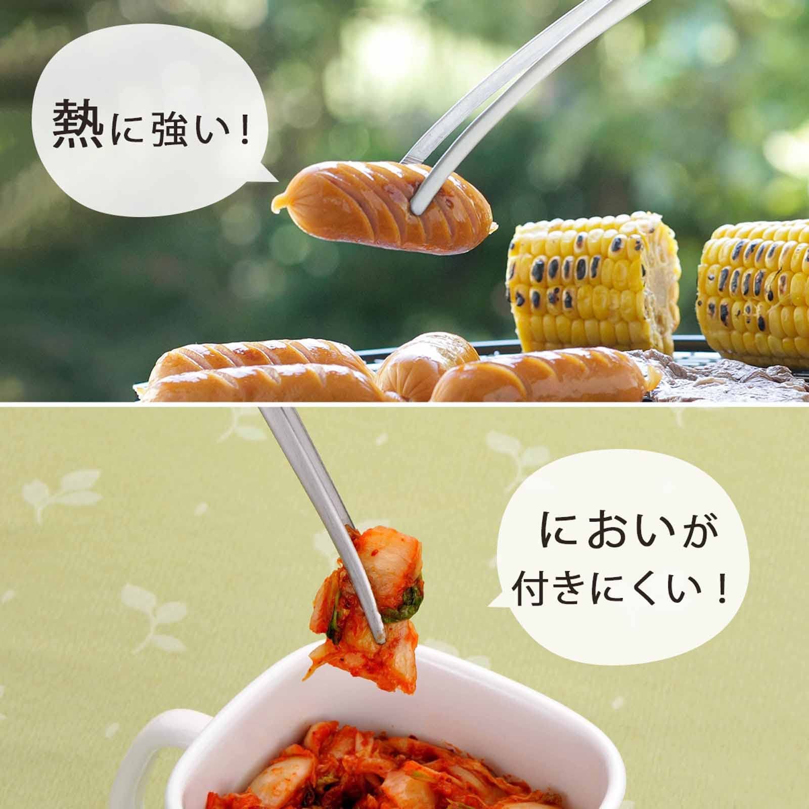 菜箸のような細めの先端部で、つかみにくい食材もラクラクつかめる