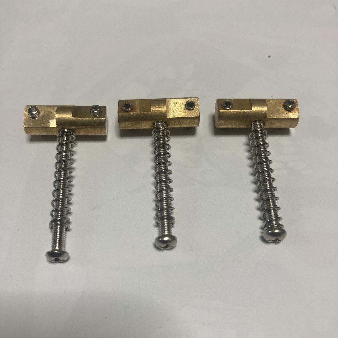 テレキャスターのブリッジによく使われる3コマのブラス製アングルドサドルです。
