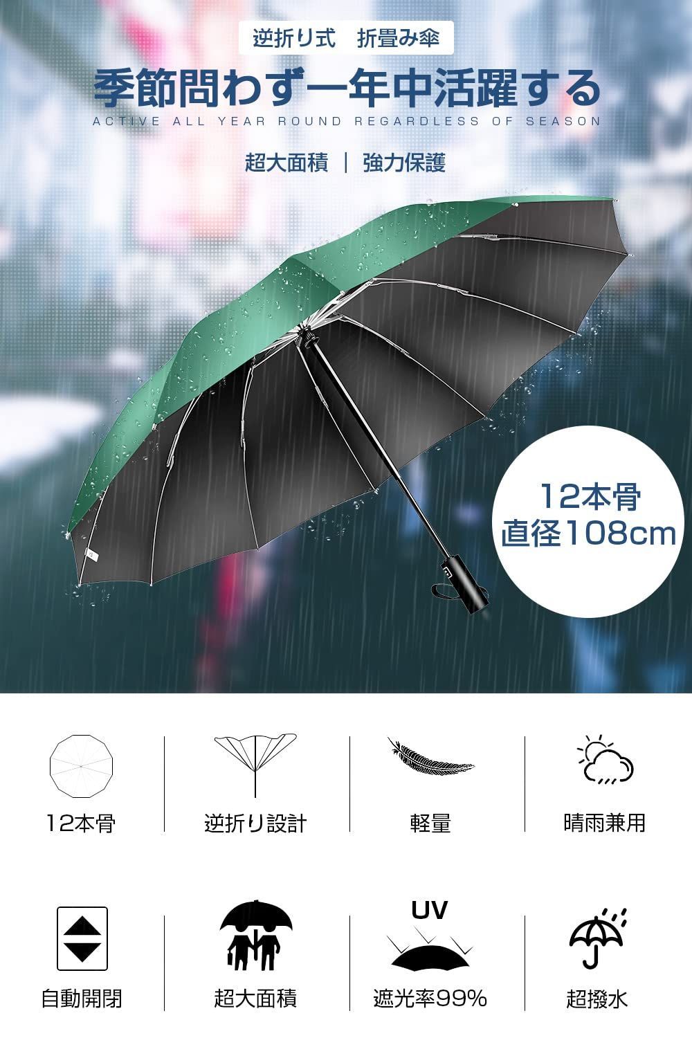 【超大サイズ・12本骨】 折りたたみ傘 ワンタッチ自動開閉 メンズ傘 大きい 逆折り式 折り畳み傘 風に強い テフロン加工 耐風撥水 丈夫耐久 折りたたみ日傘 遮光遮熱 UVカット 晴雨兼用傘 梅雨対策 台風対応 豪雨対応 メンズ レディース 母の日 父の日 ギフト