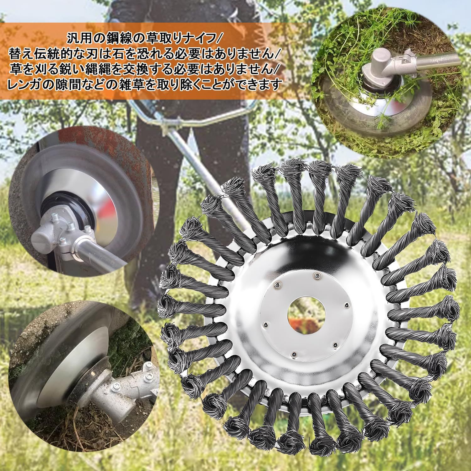 【高品質素材】スチールワイヤー材質を採用しており、頑丈で耐久性も優れています。雑草を効果的に除去します。草刈り機 の替え刃先部に耐摩耗・耐衝撃用のタングステンカーバイトチップを使用、長く使えます。