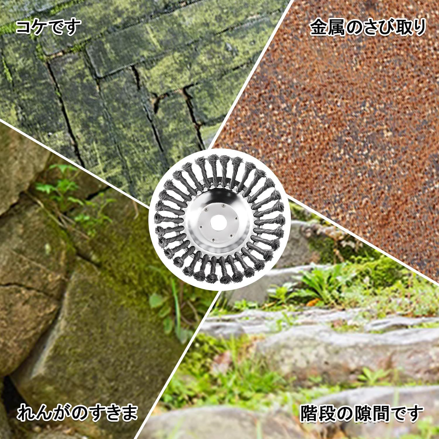 【様々な場で活躍】このチップソーは、庭、歩道の草刈だけではなく、レンガの縫い目などに苔取り、バリ取り、粉塵除去、酸化物除去、クリーニングなどにも適しています。錆除去、バリ取り、雑草クリーニングなどに大活躍!庭、駐車場、歩道に適しています。