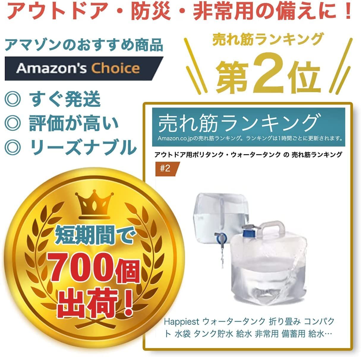 Happiest ウォータータンク 10L ×2 コック付き ポリタンク 折り畳み コンパクト 水袋 タンク貯水 給水 非常用 備蓄用 給水袋 緊急用 防災用 災害 アウトドア (10L:2個セット)