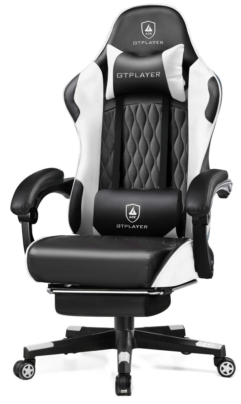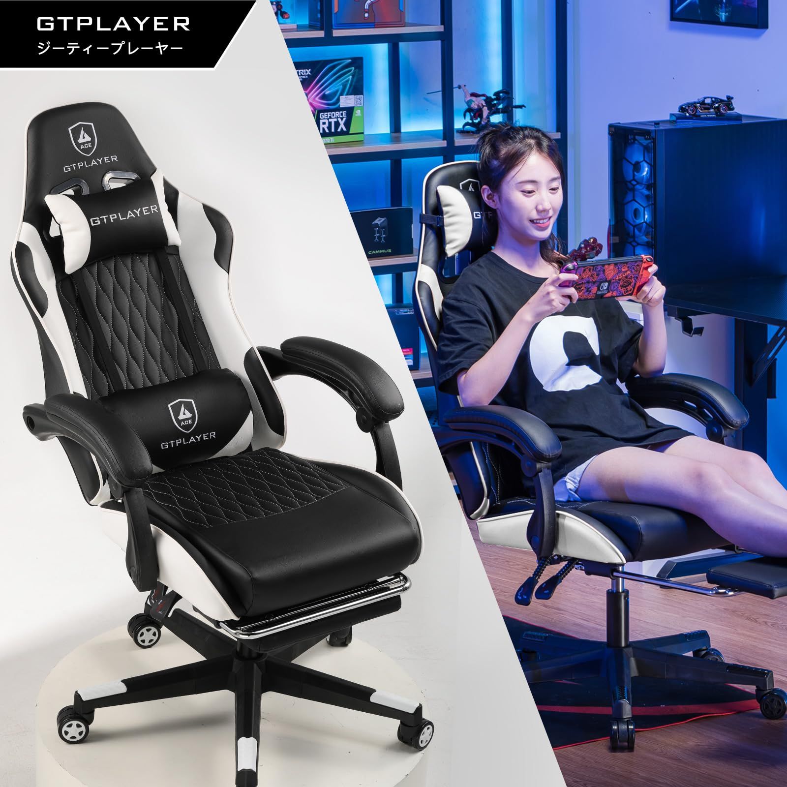 GTPLAYER ゲーミングチェア 白 デスク pcチェア 椅子 テレワーク 145°リクライニング オットマン付き ゲームチェア ハイバック ランバーサポート ポケットコイルが内蔵 PUレザー GTPlayerシリーズ GTP900