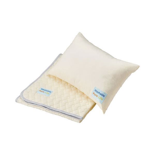 材質:敷きパッド:(側)ポリエステル65%・綿35%・(中わた)ポリエステル100%(約0.3kg)、枕:(側)ポリエステル65%・綿35%・(中わた)ポリエステル100%(約0.5kg)(中空ポリエステルわた50%使用)