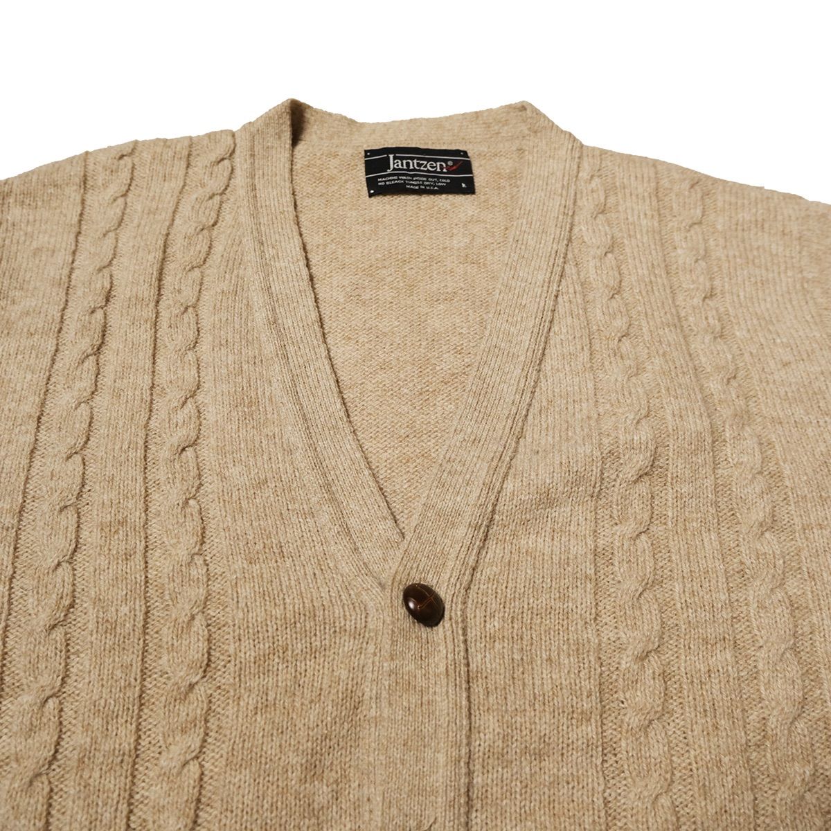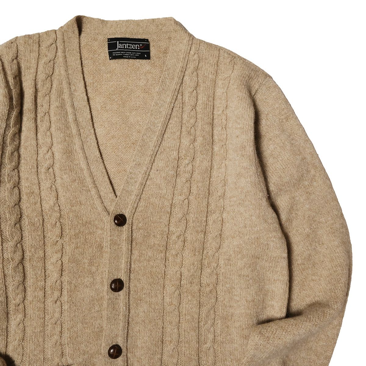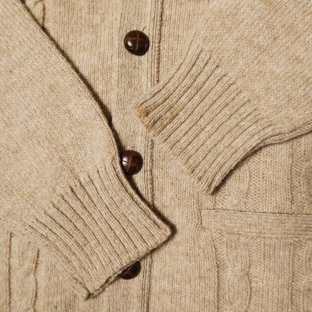 フロントにケーブル編みが施されたシンプルなニットカーディガン、