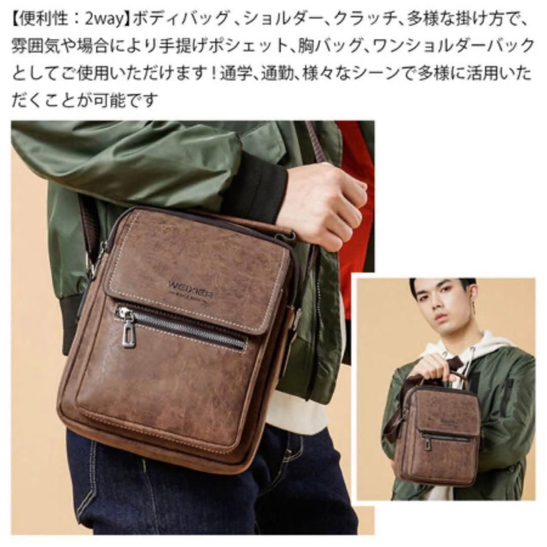 革 ショルダーバッグ メンズ 2way 斜め掛け 手提げ バッグ セカンド バッグ 手持ちバッグ Ipad9.7収納可 縦型 小さめ メッセンジャーバッグ 通学 通勤 肩掛け バッグ 自転車かばん プレゼント男性 ブラウン