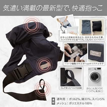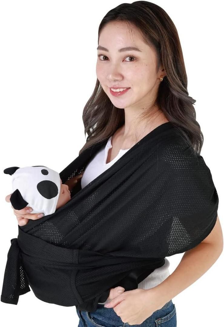 優しく包み込む様に 抱っこ紐 スリング 新生児 折りたたみ 簡単 肩掛け 軽量 コンパクト 20kg サイズ調整可能 (メッシュブラック)