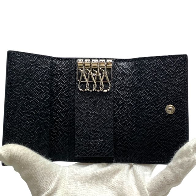サンローラン 685557 4連 キーケース キーリング レザー ロゴ ブラック シルバー メンズ レディース ユニセックス SAINT LAURENT 美品 正規品 上品な印象 高級感あるデザイン