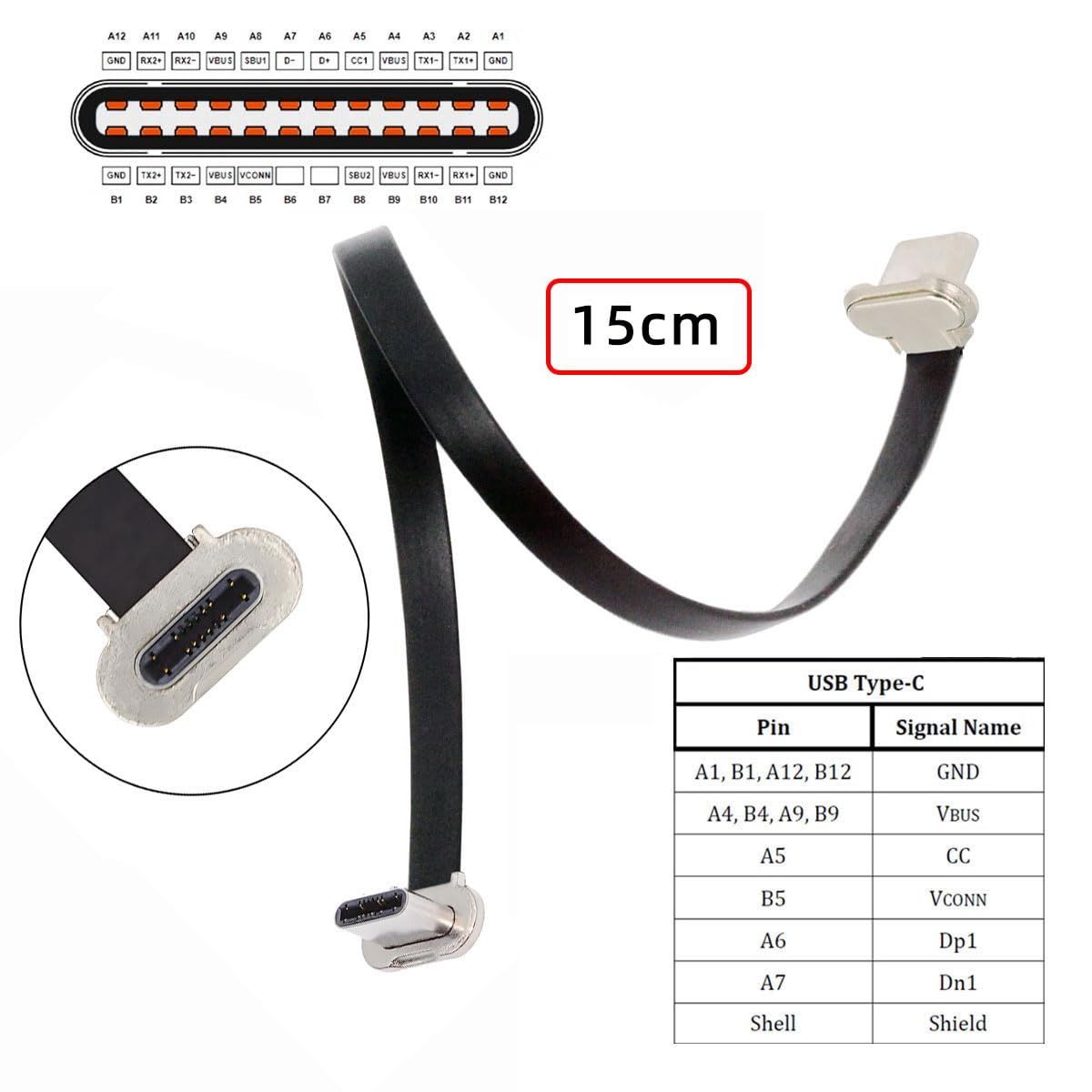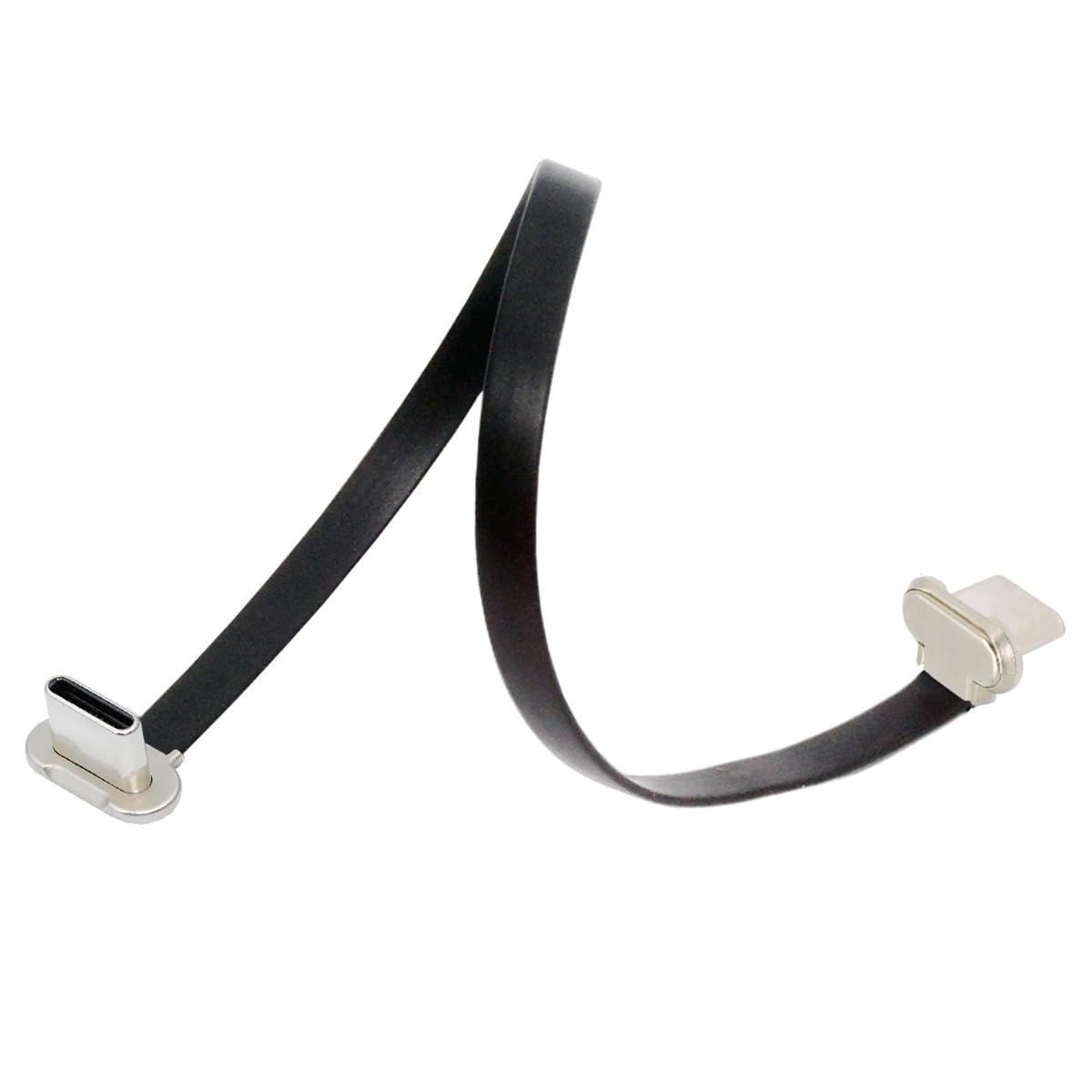CY ケーブル 角度付き USB-C タイプC - USB-C 超薄型フラットパワー USB2.0 データケーブル 65W 急速充電 ノートパソコン タブレット スマートフォン用 (15cm)