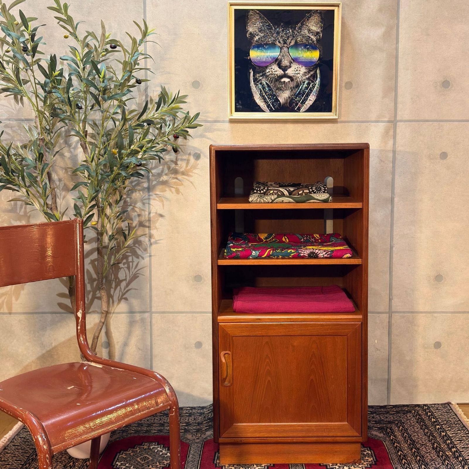 ロゴやプレートはございませんがデザインや構造の特徴、及び現地セラーからの情報から1960年代後半〜1970年代に製造されたG-PLAN製と判断いたします。この時代のチーク材は時を経るごとに色艶が増し、深みのある美しい色合いに変化しています。この風合いは新品の家具では決して得られないヴィンテージならではの特別な魅力です。