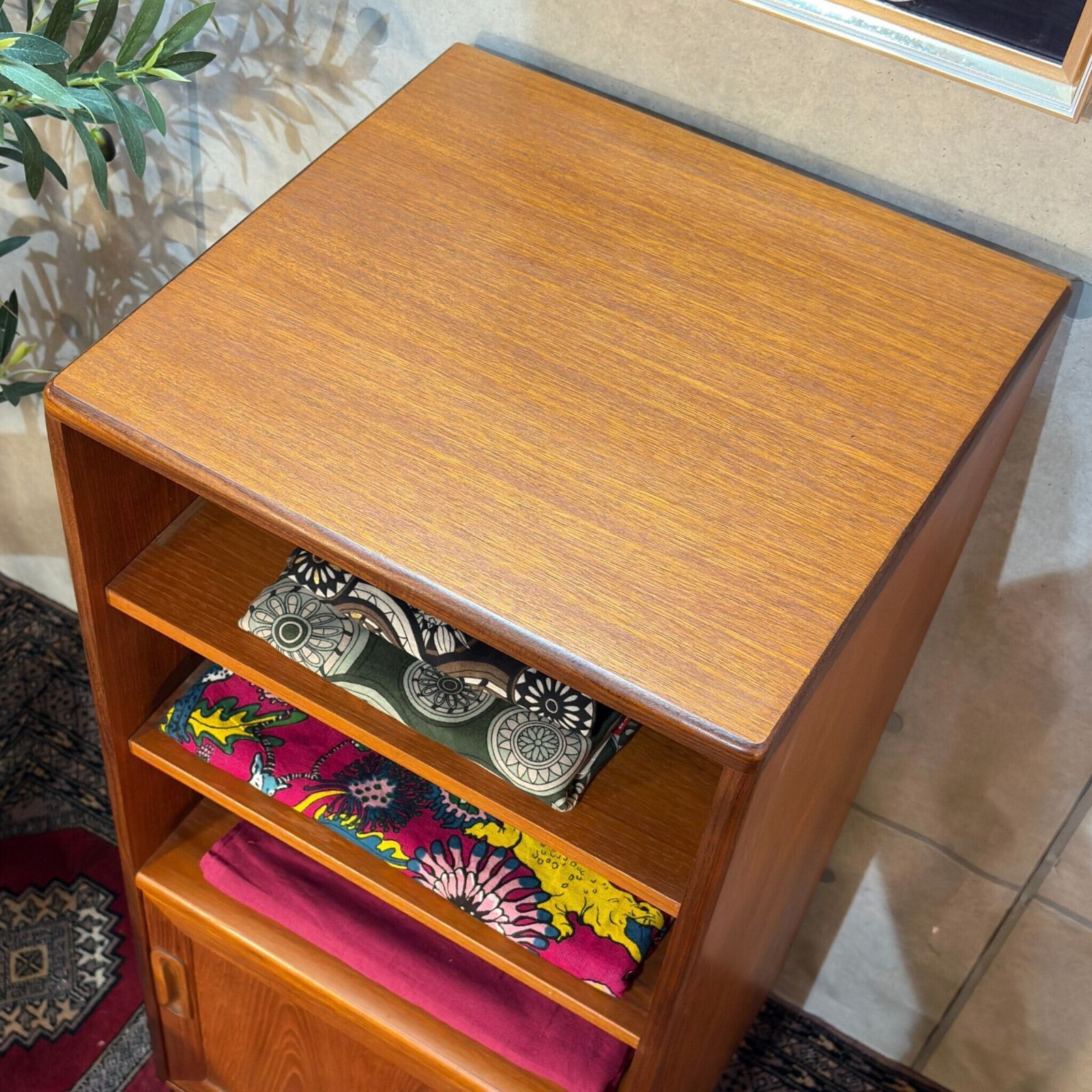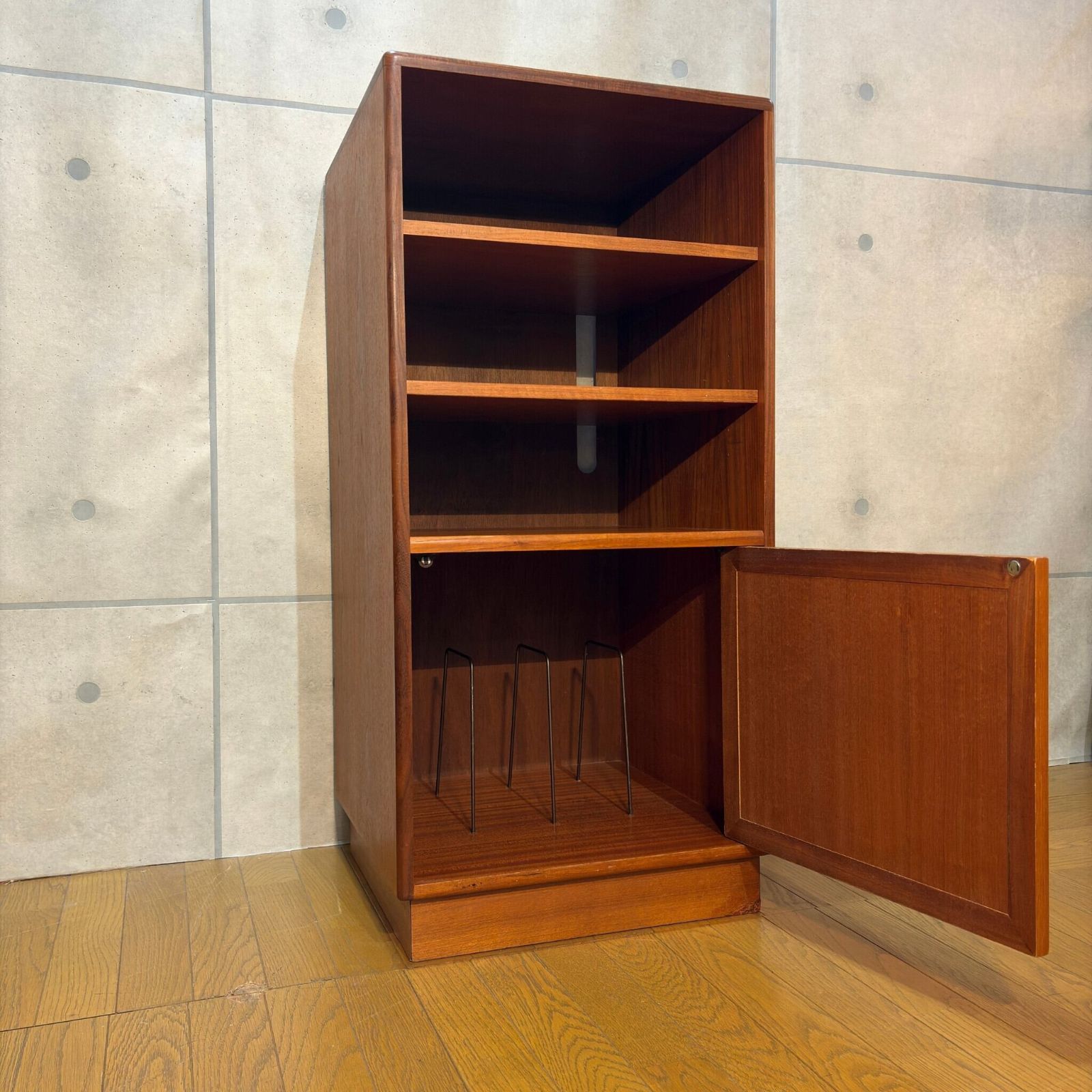 北欧デザインの影響を色濃く受け英国のミッドセンチュリー期を牽引した家具メーカー、G-PLAN(ジープラン)によるコンパクトなレコードラックです。無駄のない直線的なデザインは現代の空間にも溶け込みます。