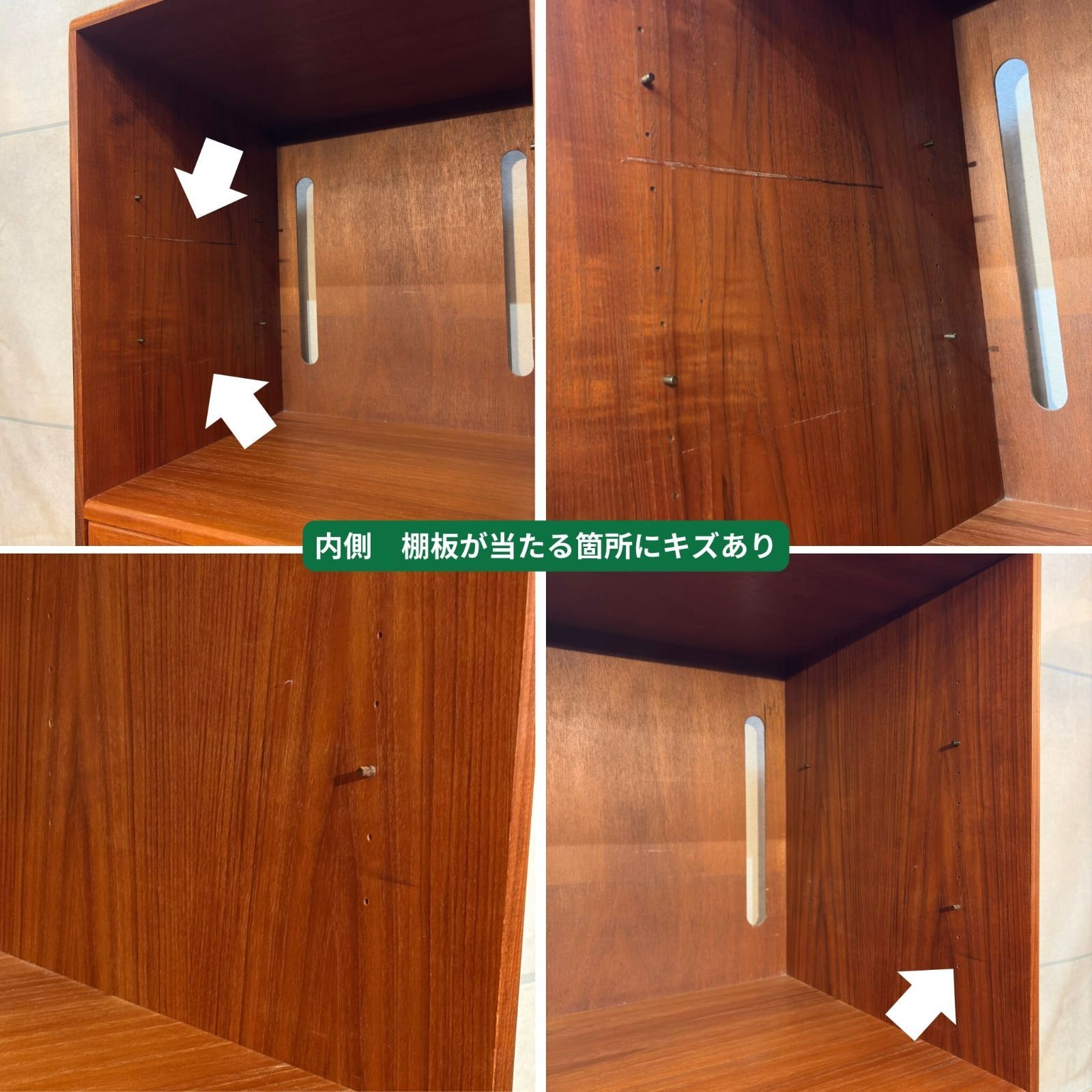 オープン部分の棚板が当たる箇所にはキズが見られます。可動式の棚板も少し痛みがありますが使用に差し支えはありません。