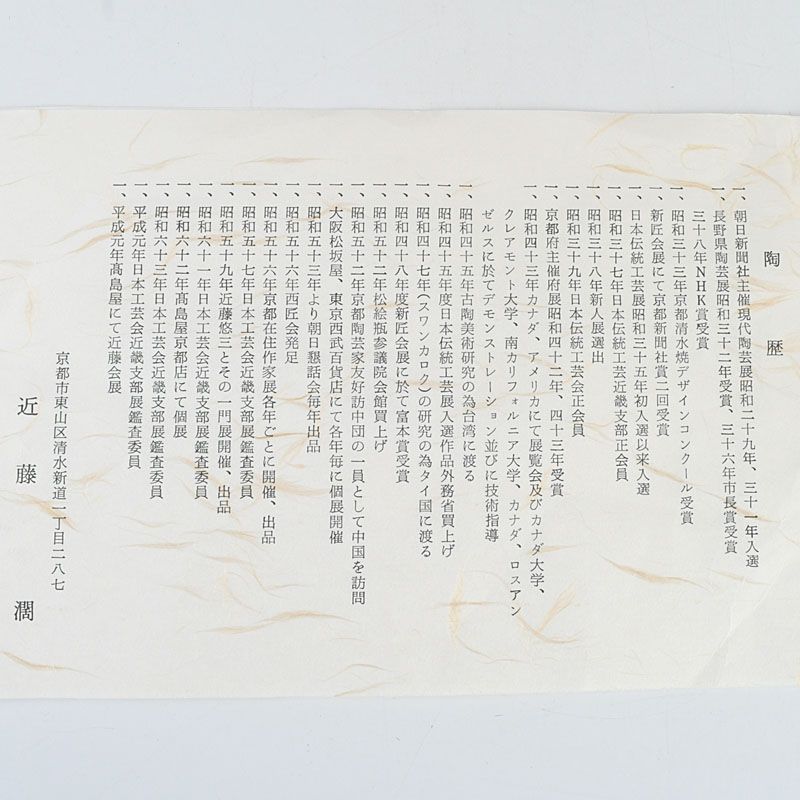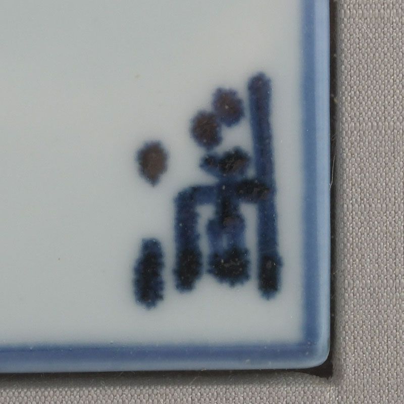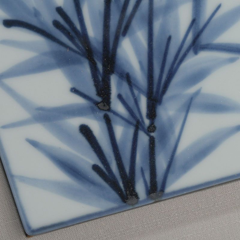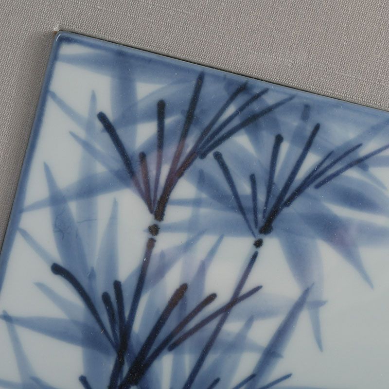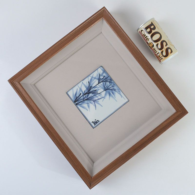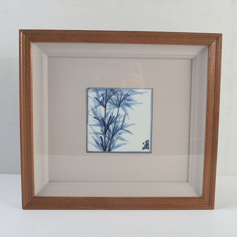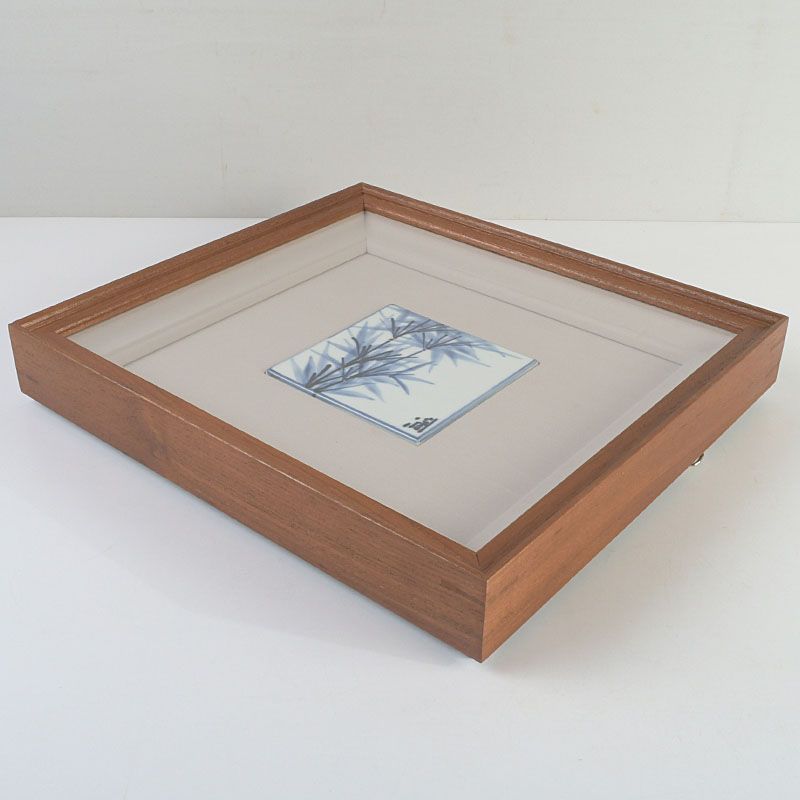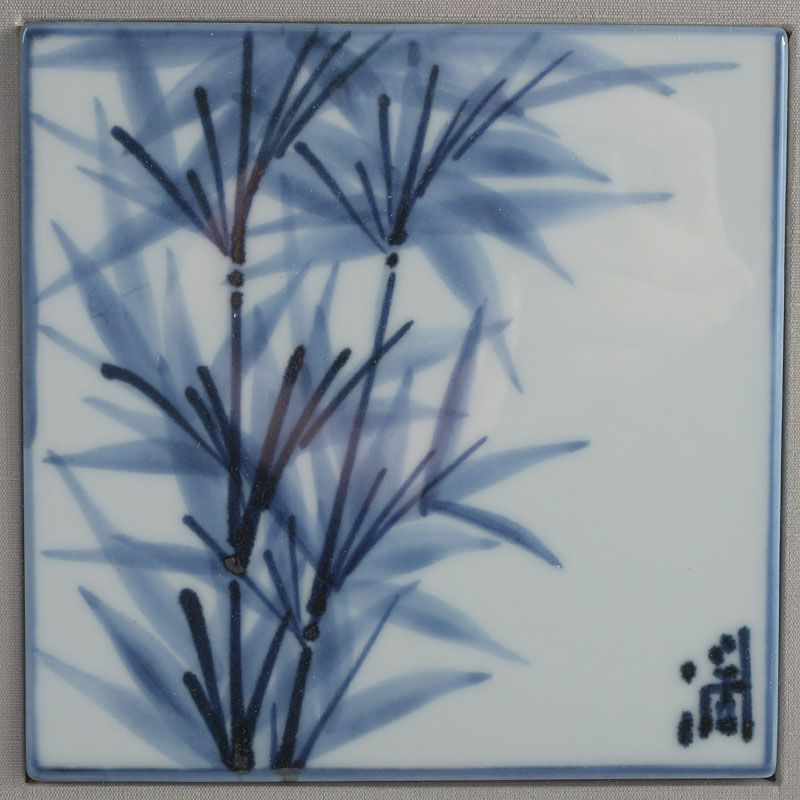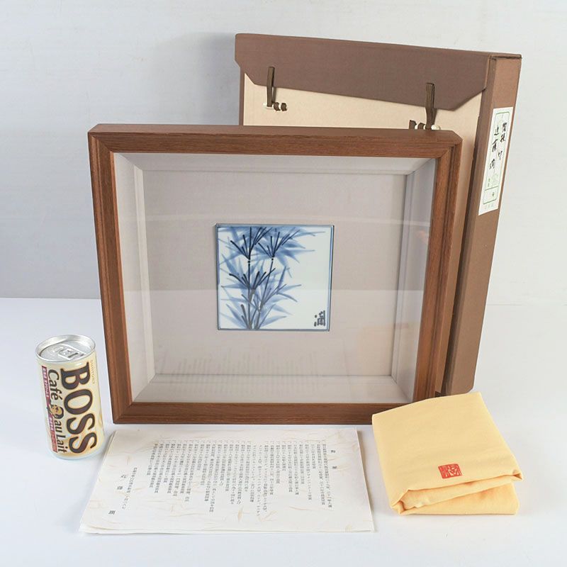 陶芸家 近藤濶作 染付 竹文 陶板 額装 箱付 C S83