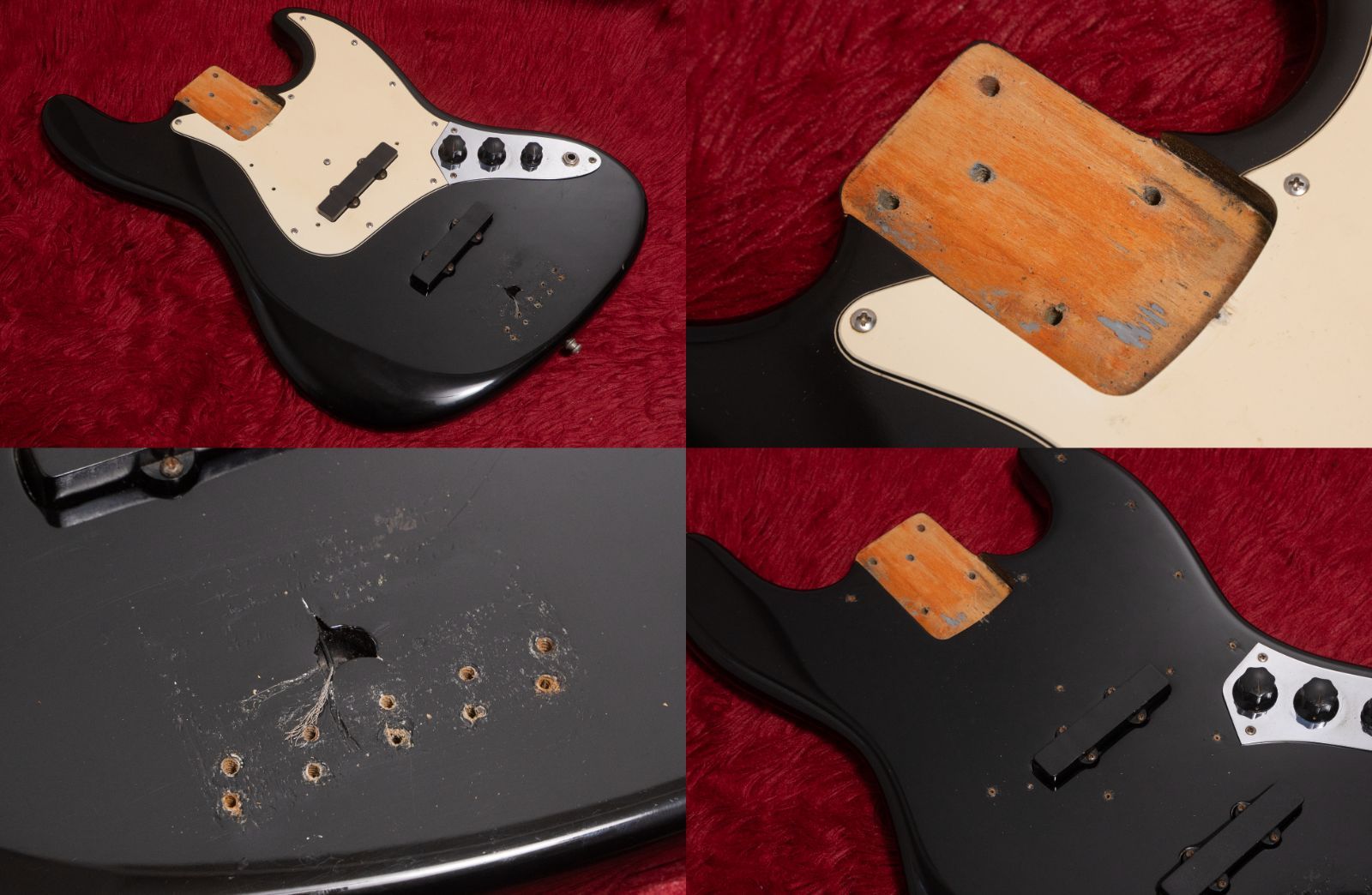 ピックアップはEMG J Setに交換されており、ボディ背面にはバッテリースペース用のザグリが施されています。