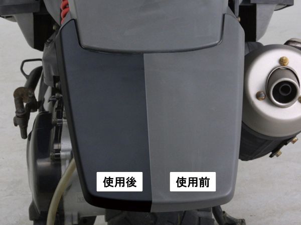 ・「シボ」の質感を損なわずに白く色あせた樹脂を黒々と復活させることができます。