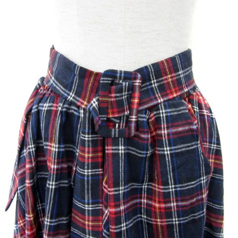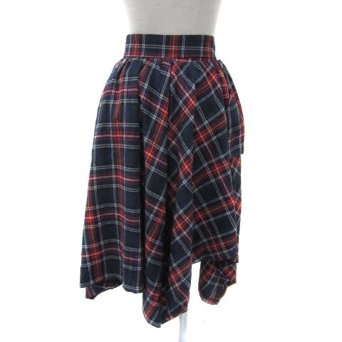 【商品名】リーナクチュール Riina couture BLACK RIINA フレアスカート マキシ丈 ロング丈 チェック柄 変形 ウエストベルト付き マルチカラー 紺 ネイビー /YS14