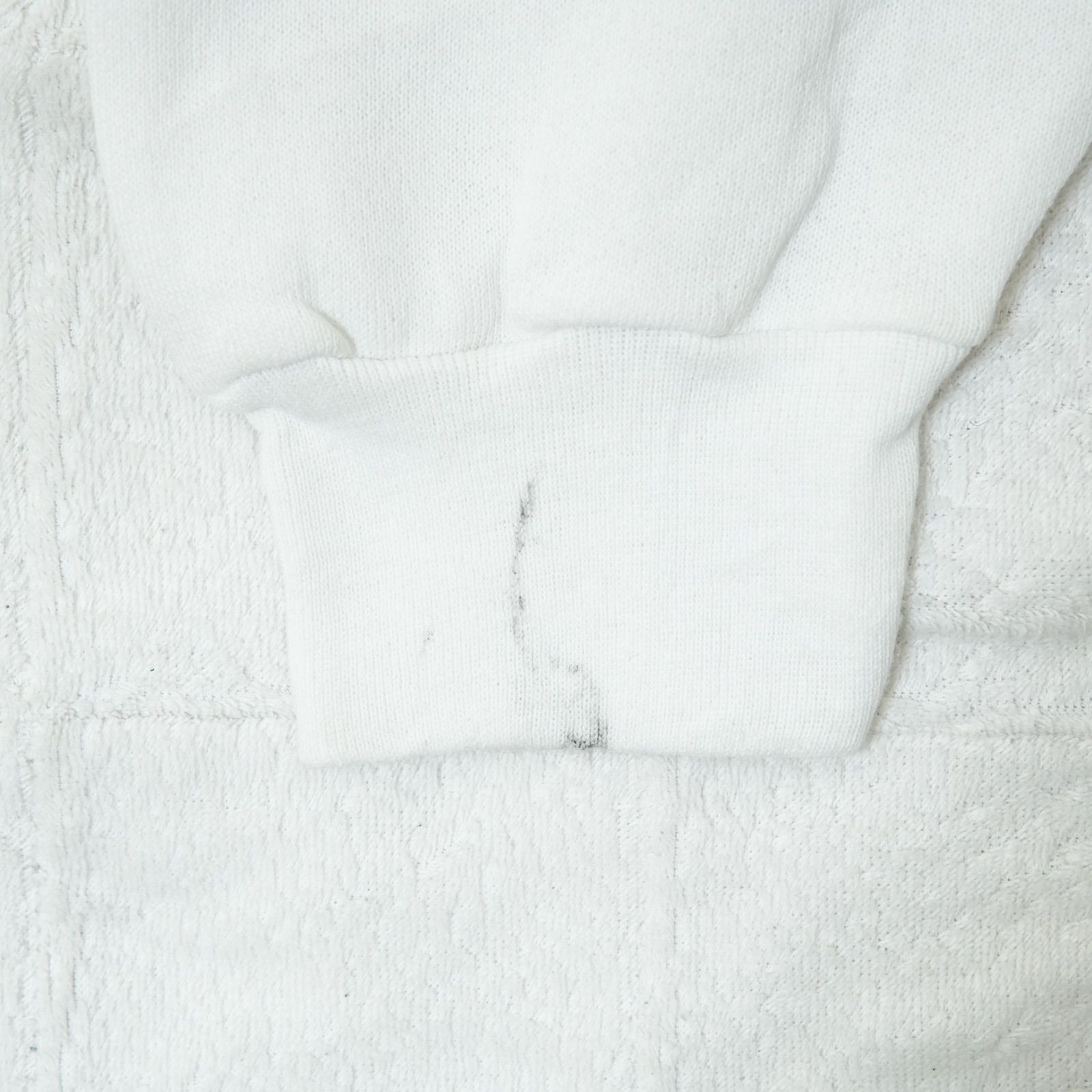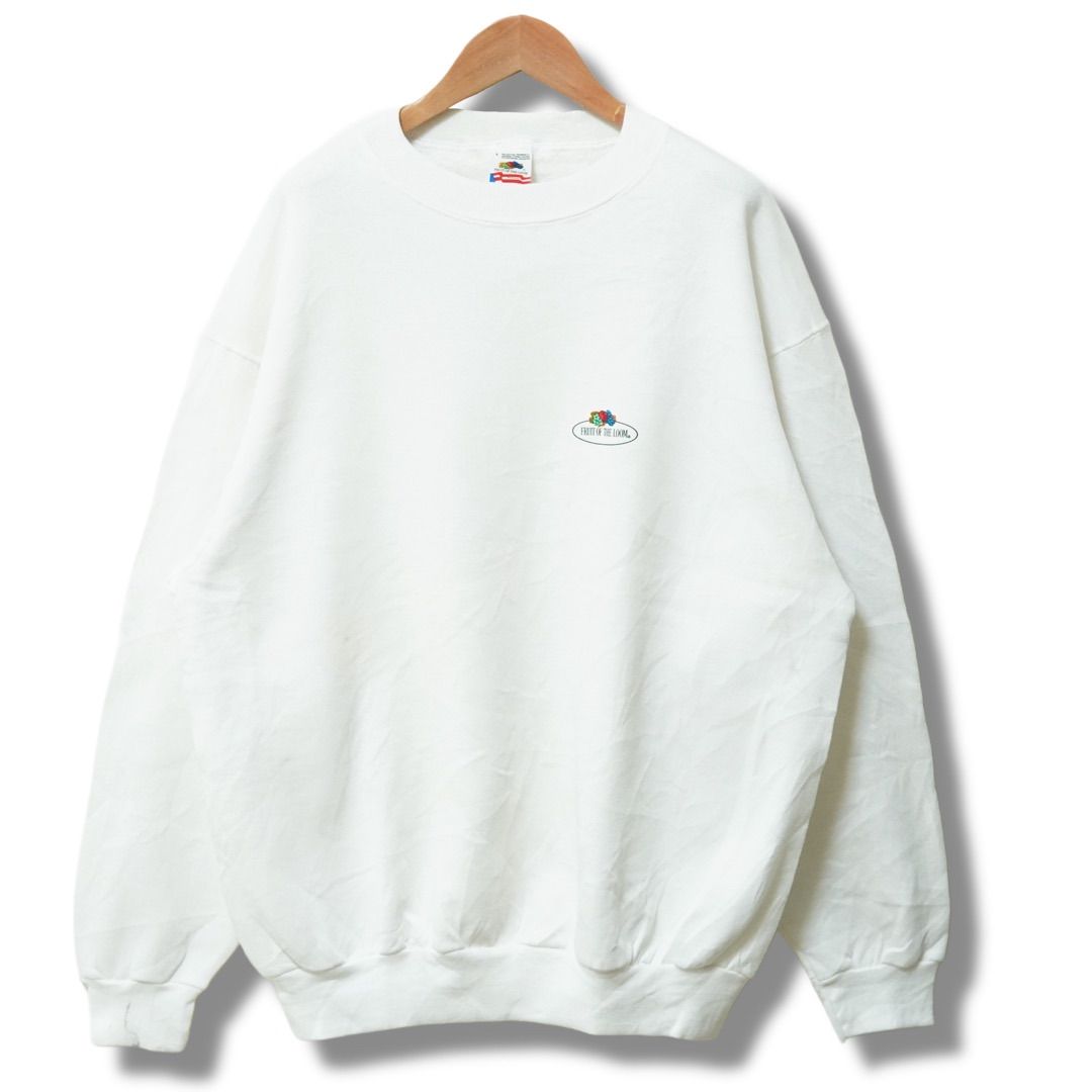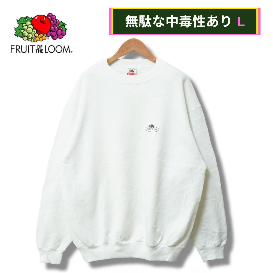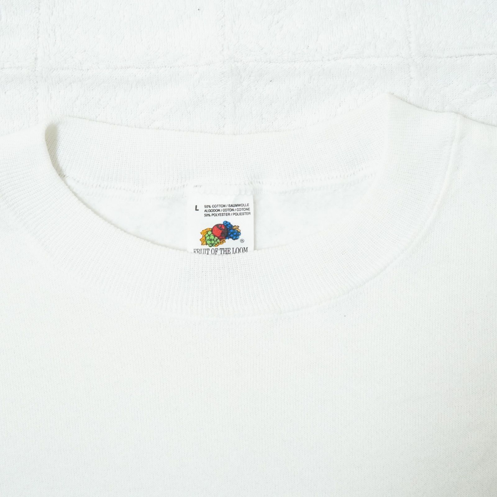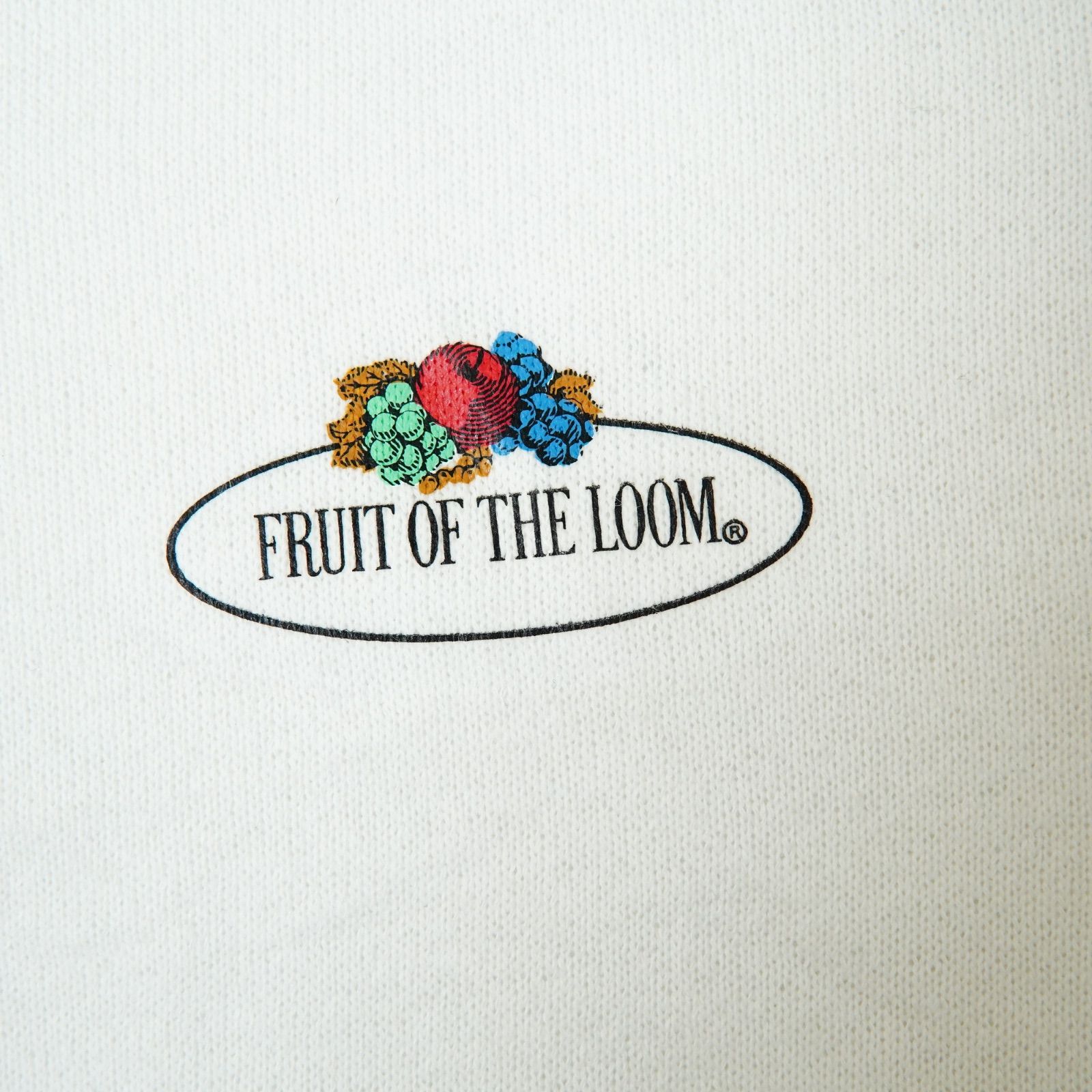 古着好きなら誰もが知っているFRUIT OF THE LOOMのワンポイントスウェット。タグとしては定番ですがプリントは意外と珍しい1枚。真っ白なボディの左胸に、小さく入ったおなじみのフルーツロゴ。これだけで十分な存在感。もちろん90年代USA製。
