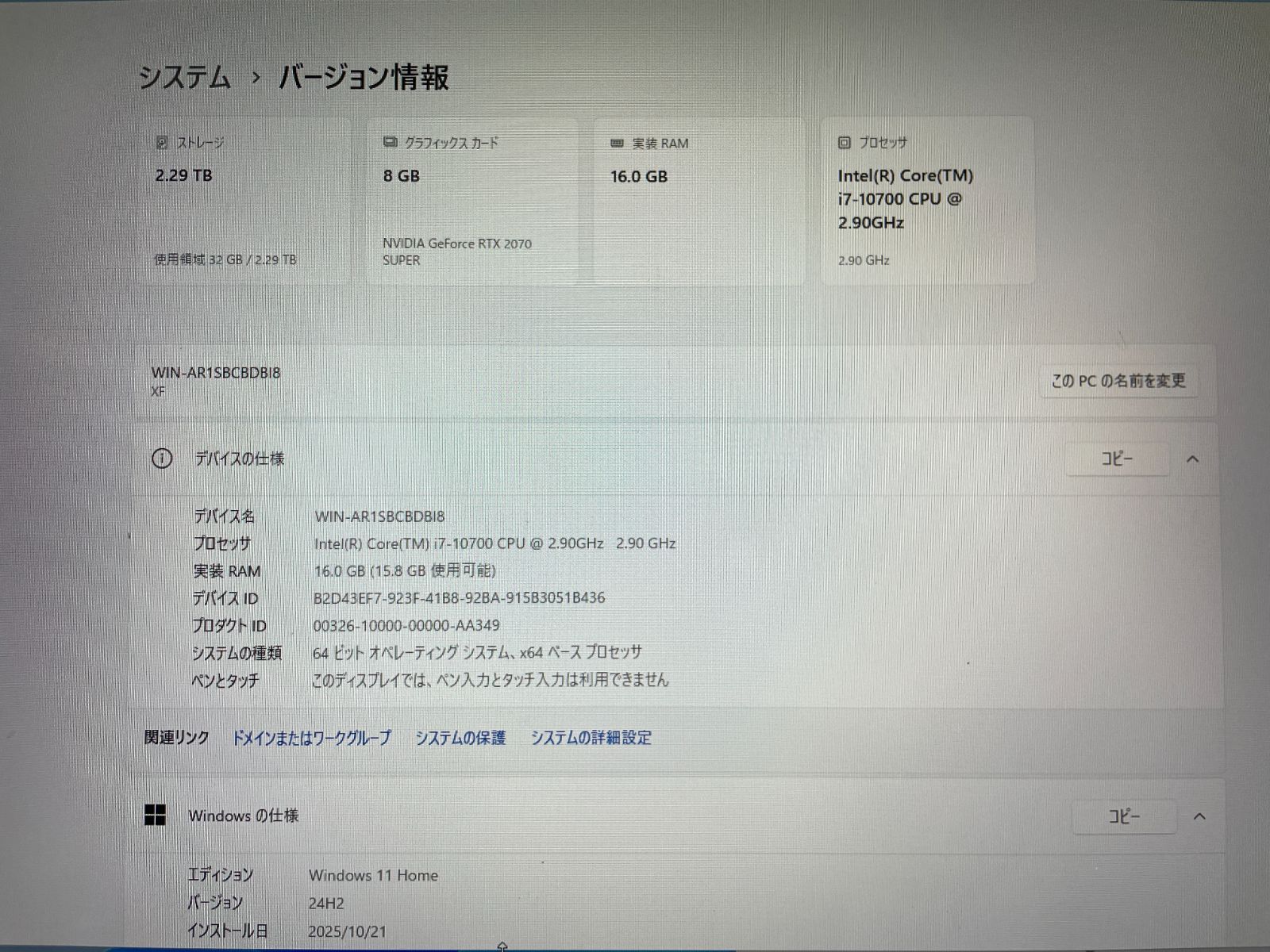 また、念のため、画像のスペック表の確認と疑問点ありましたらお問い合わせください。