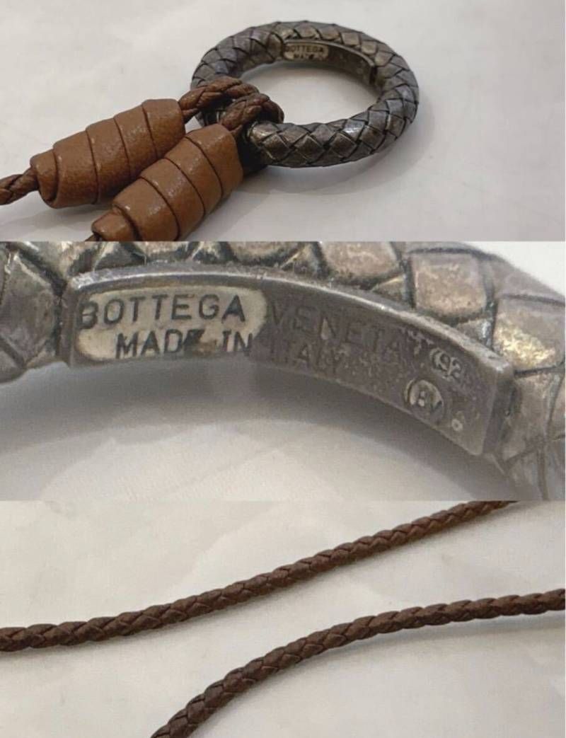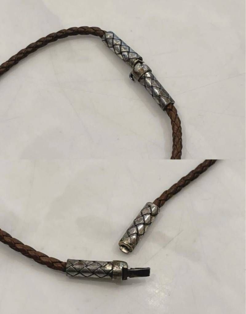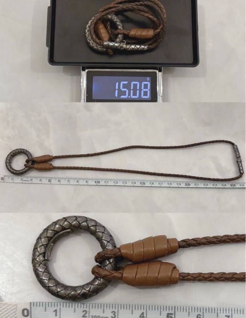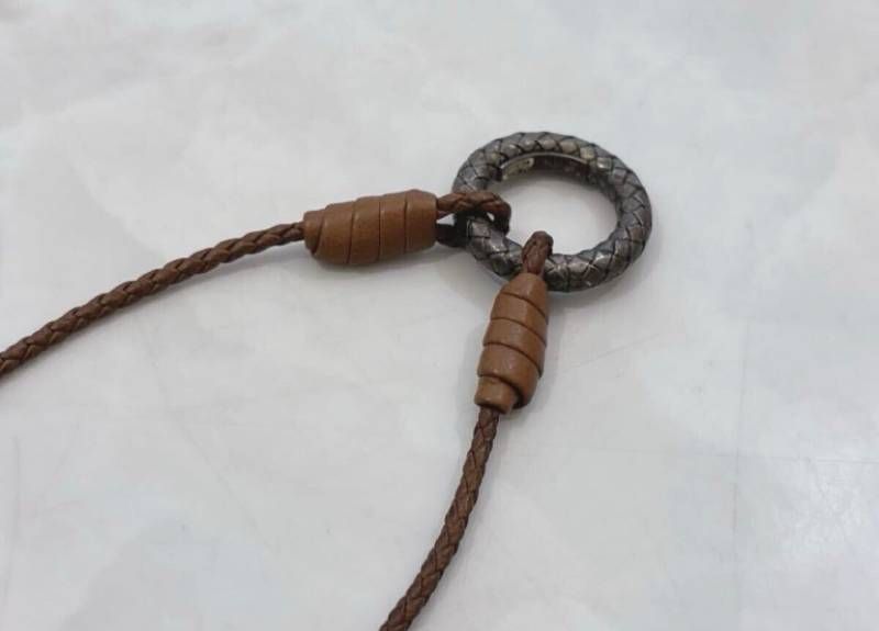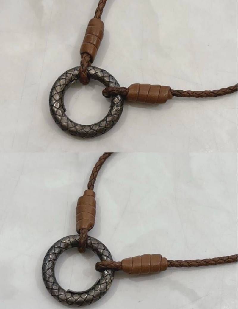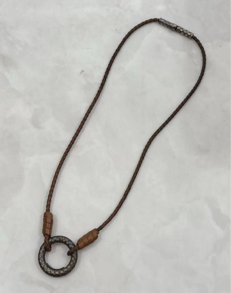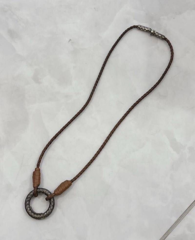 22 BOTTEGA VENETA ボッテガヴェネタ イントレチャート サークル シルバー925 レザー ブラウン ネックレス