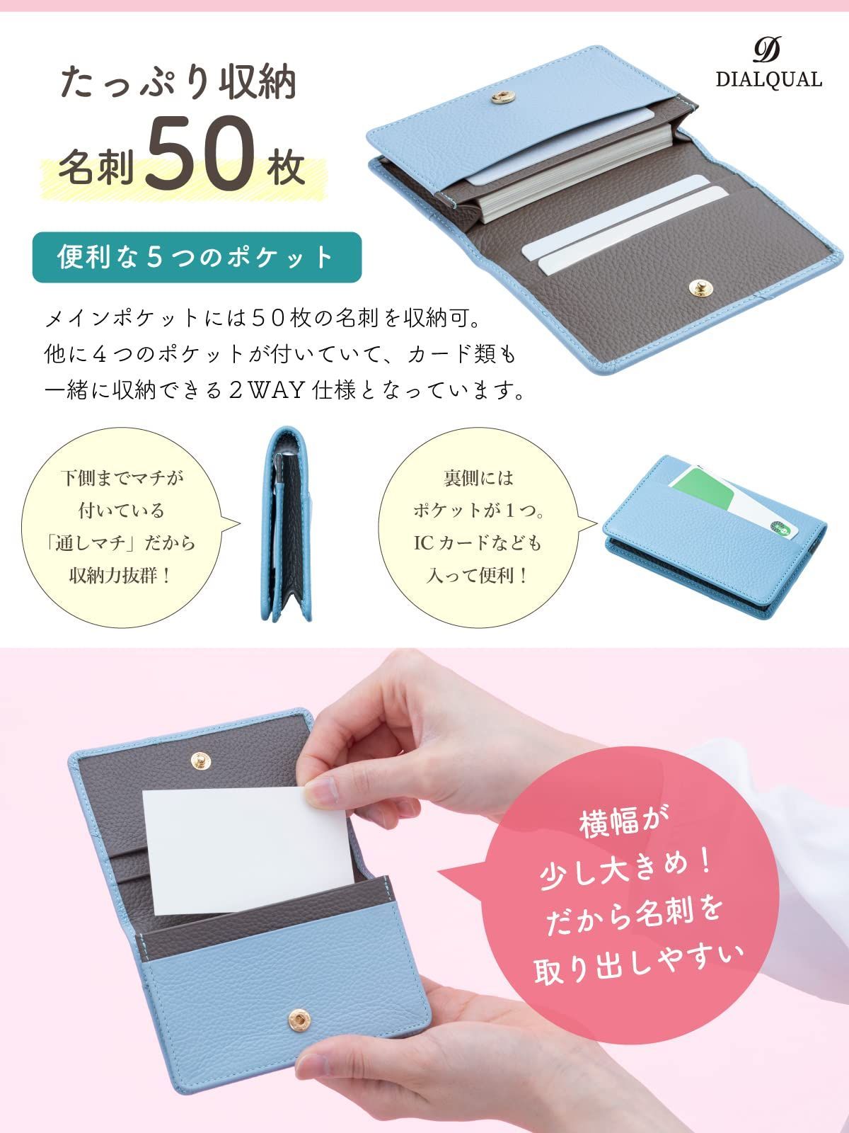 [DIALQUAL] 名刺入れ レディース 革 【anan掲載 大容量 50枚収納】 名刺ケース (グレージュ/パステルピンク)
