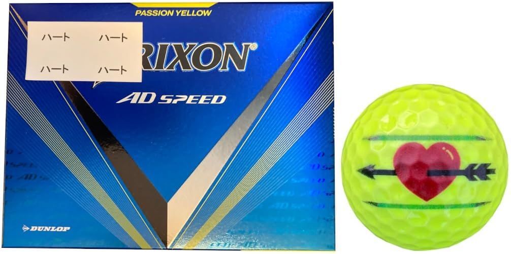 Style:黄1ダース_ハート 【ハピラキ_ゴルフライン】 ダンロップ ゴルフボール スリクソン AD-SPEED 2024年モデル ライン入り (黄1ダース_ハート)