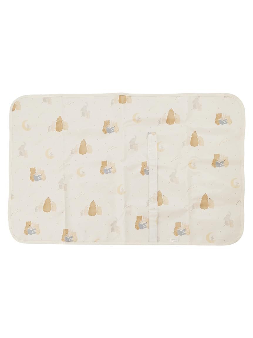 星空を見上げる動物たちをあしらった、ほのぼの優しい気持ちになれそうなママ小物シリーズです。ベビーとのお出かけに便利なおむつシートは、くるっと畳んでマジックテープで留めればコンパクトなサイズ感に。ママバッグにさっと入れて手軽に持ち運べます。表は汚れても拭き取りやすいコーティングを施しており、裏地は抗菌防臭加工済み。色はクリームとネイビーの2色を揃えました。同シリーズのママ小物、ルームウェアとコーディネートしたり、出産祝いのギフトにもおすすめです。