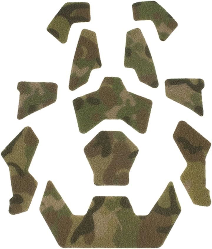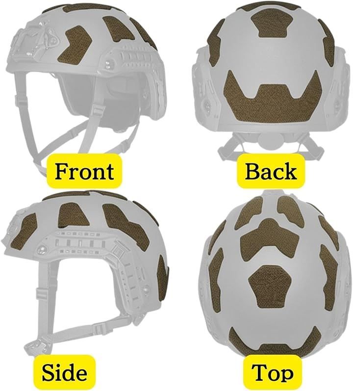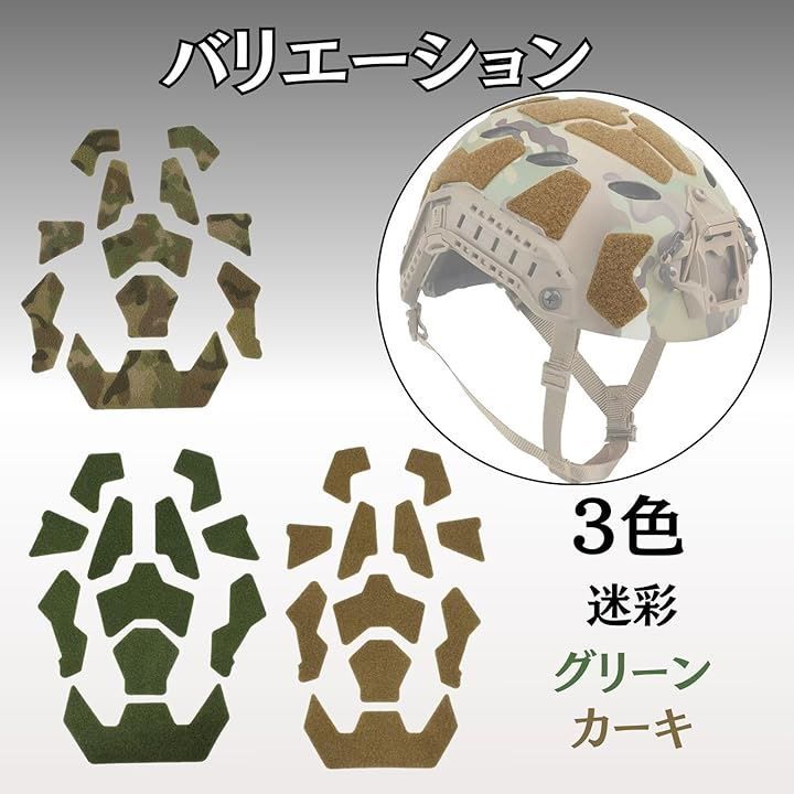 滑りやすいヘルメット表面をザラついた布面に変えることで、アクセサリーやパッチの安定した装着を可能にします。