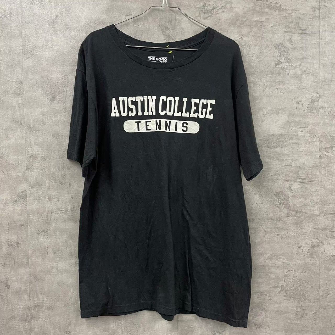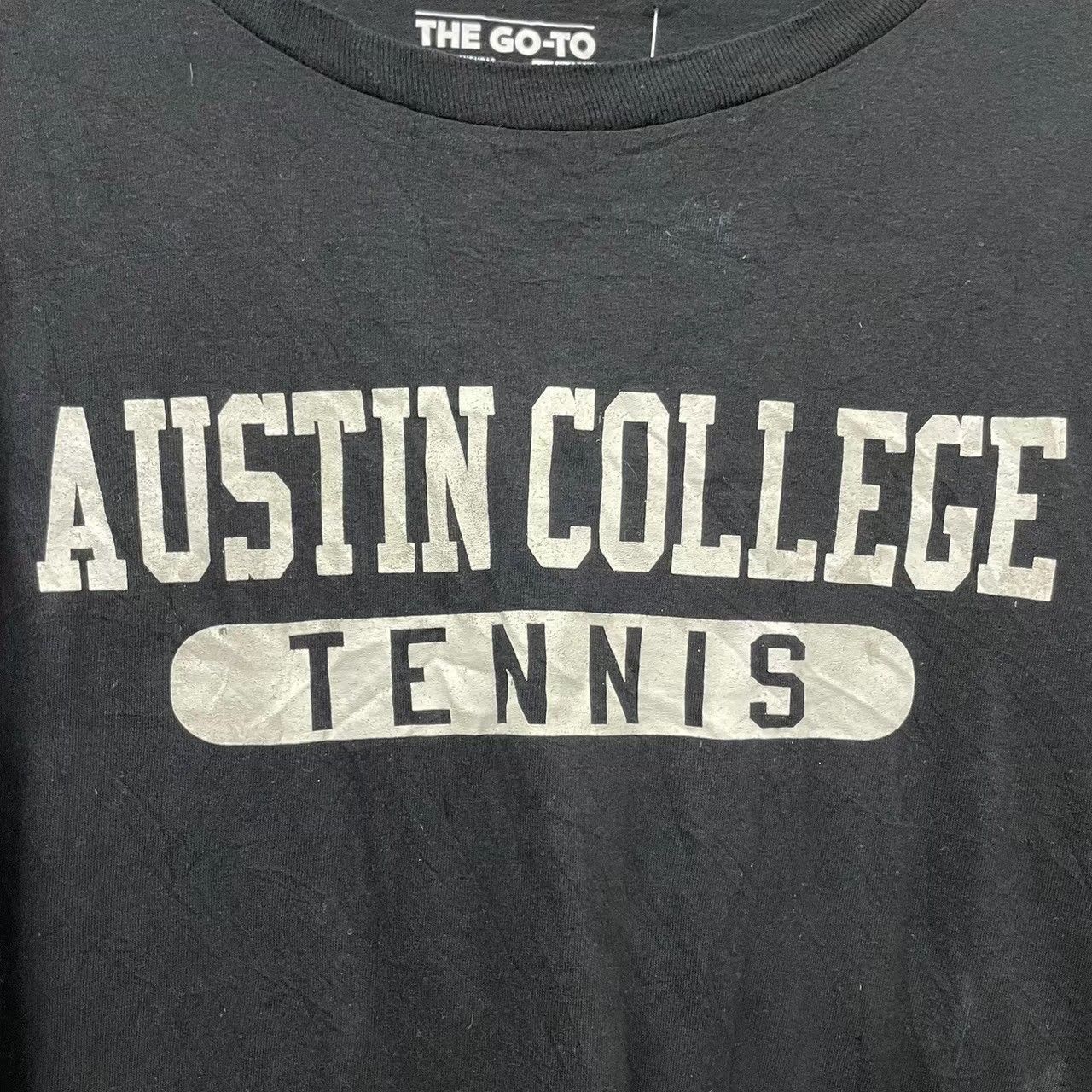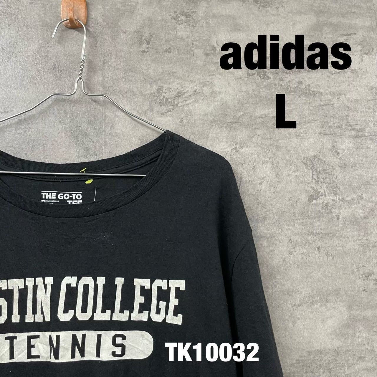 adidas アディダス ブラック Tシャツ 半袖 メンズ L 夏服 クルーネック コットン テニス Austin College RN119208 USA 古着 TK10032
