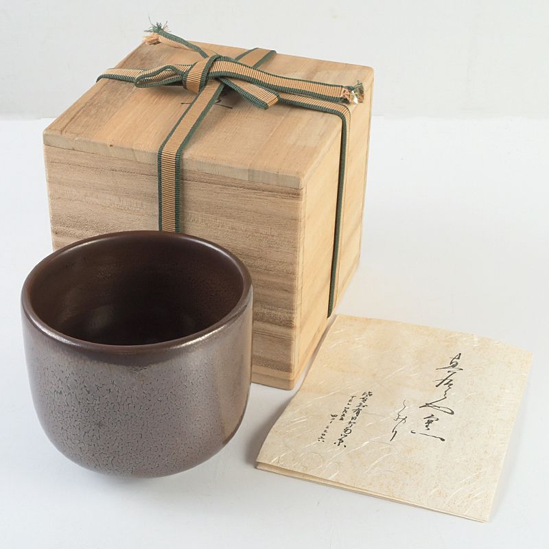 有田焼 馬場真右ェ門作 油滴天目茶碗 共箱 N S95