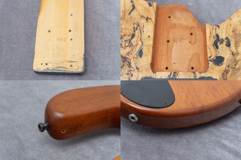 ボディバックにはおそらくMahogany、トップには杢目の美しいSpalted Mapleを採用。