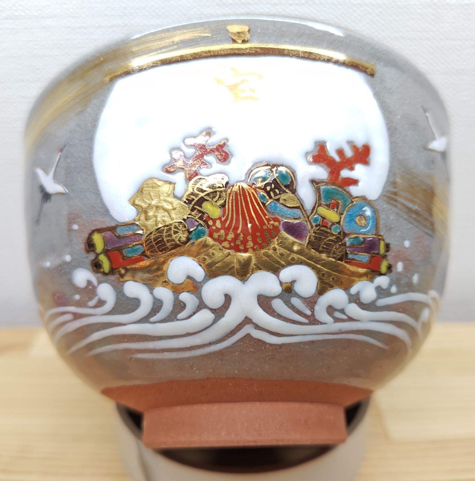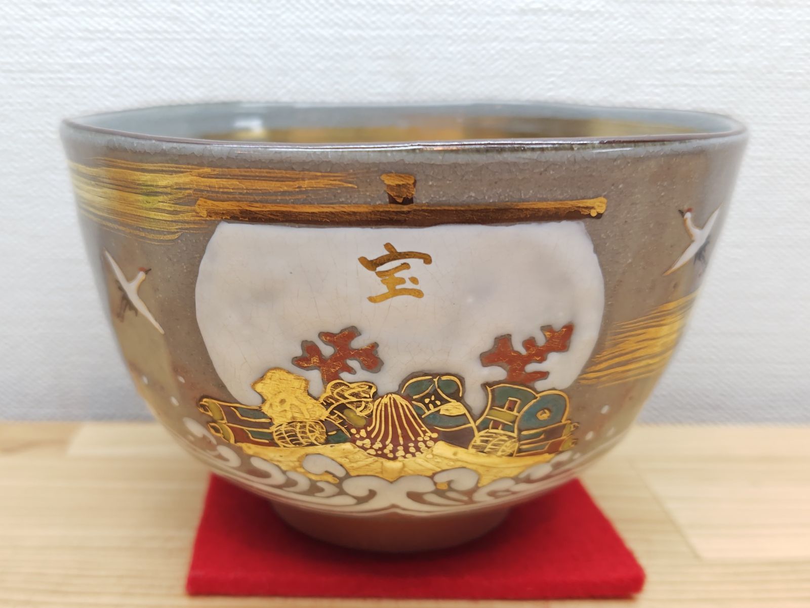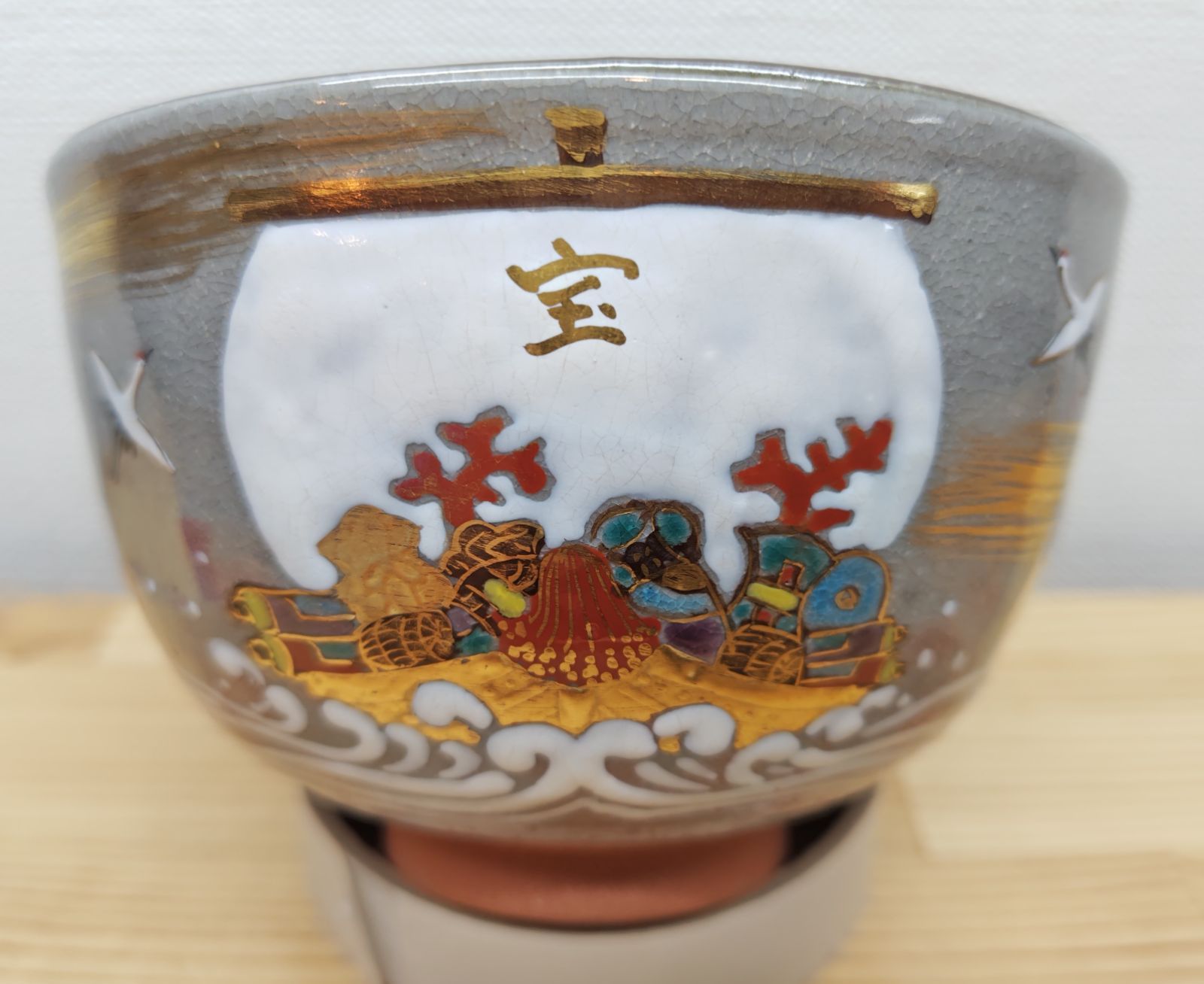 色絵のお茶碗で、これからの季節に良い宝船の絵付けになっています。