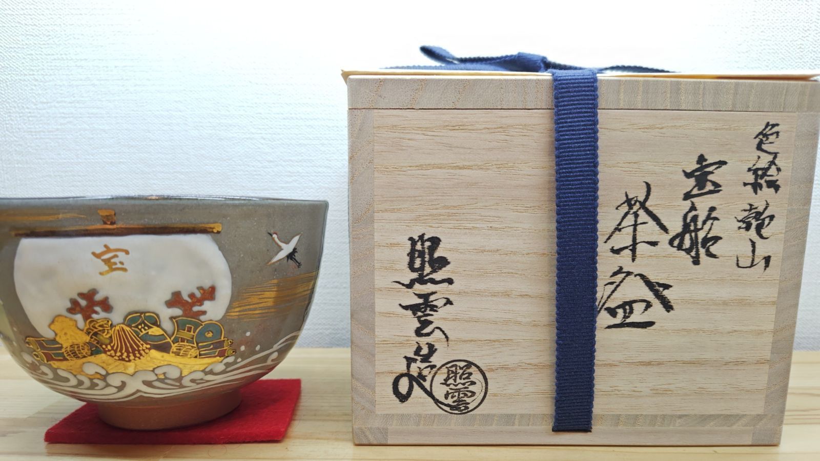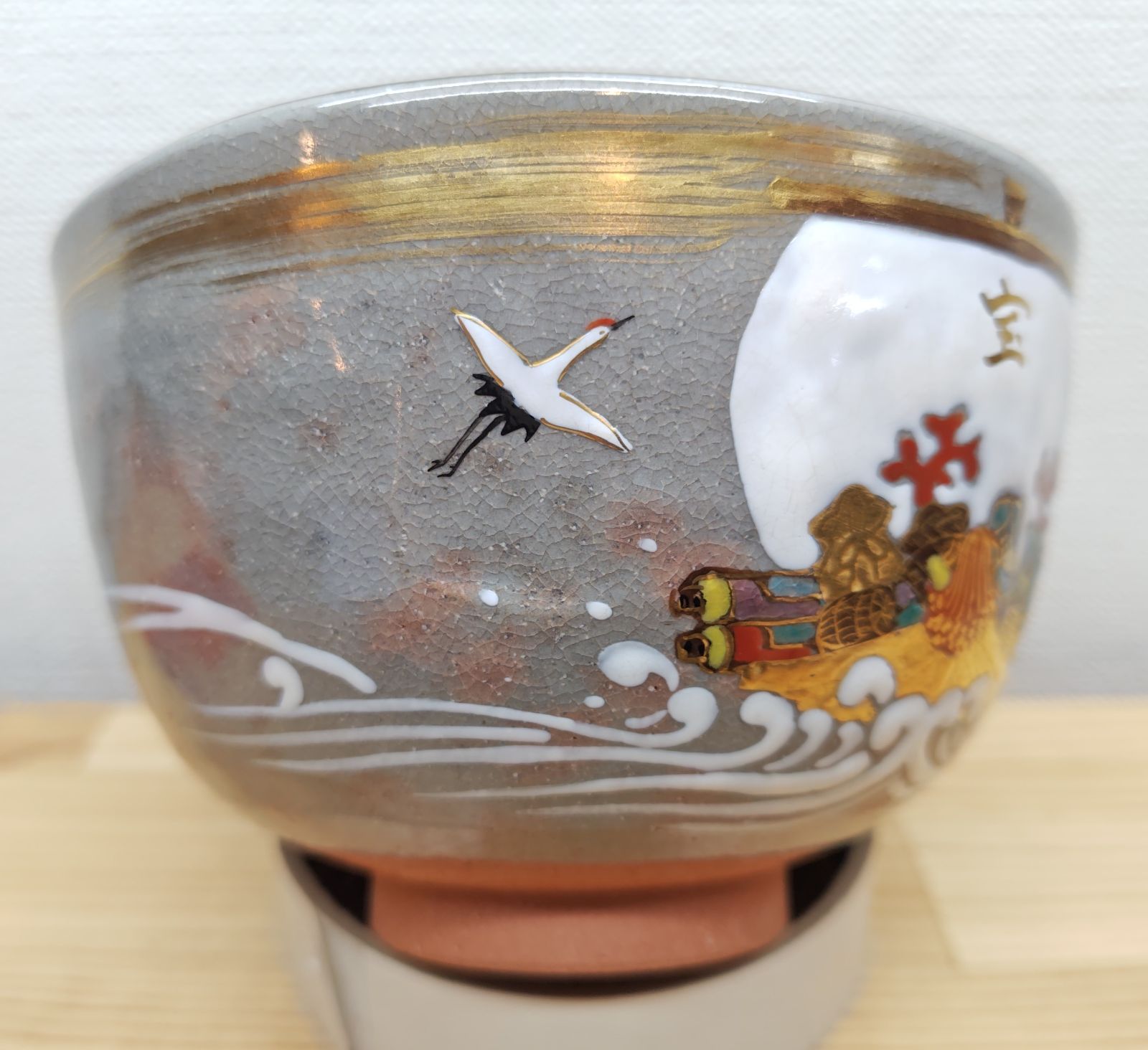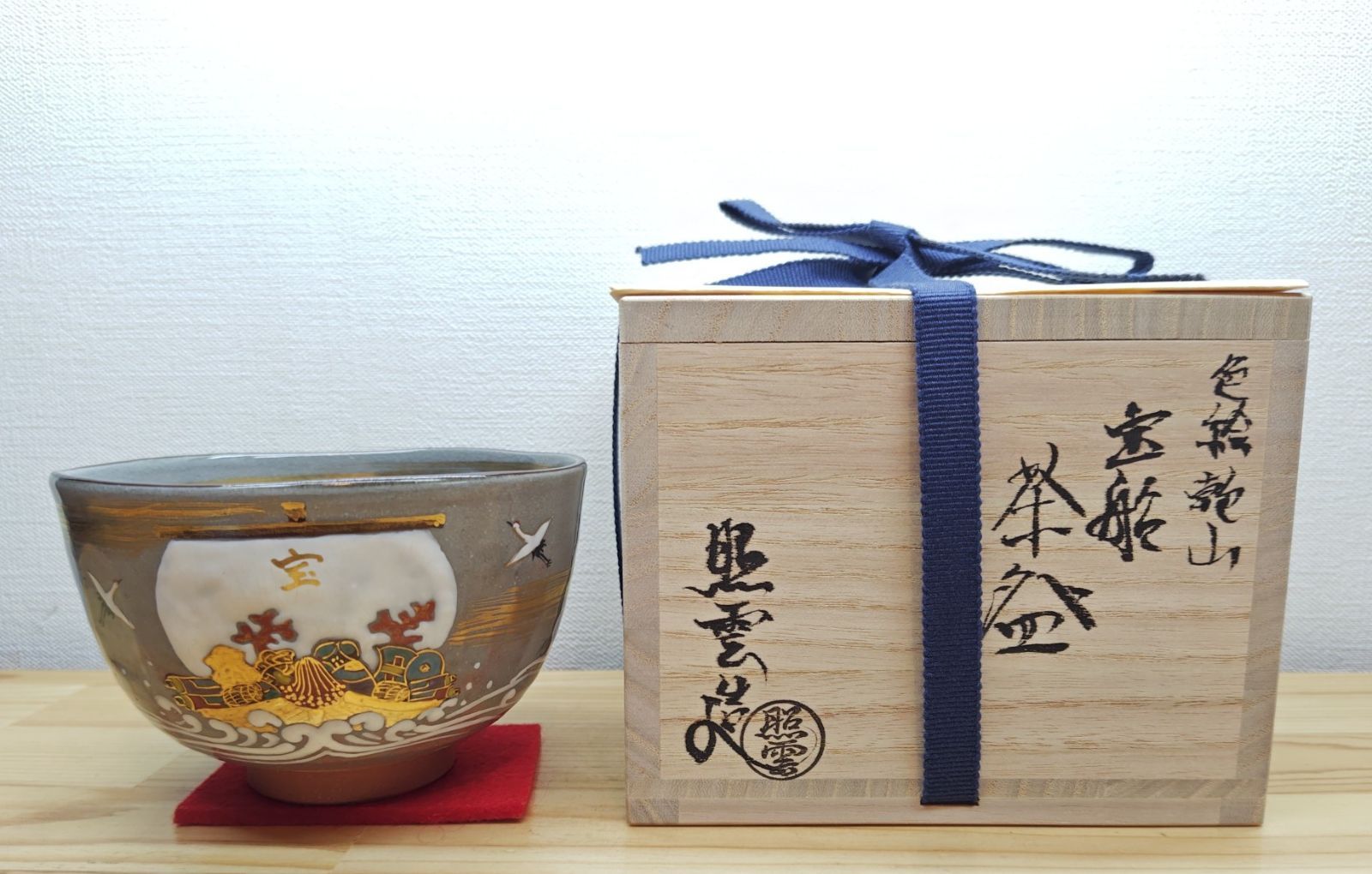 色絵のお茶碗で、これからの季節に良い宝船の絵付けになっています。