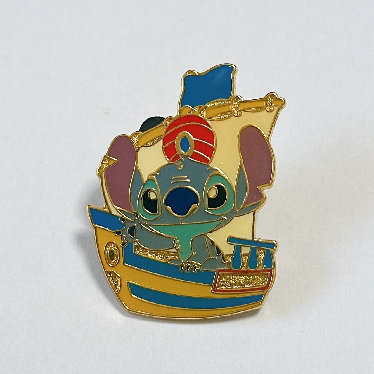 東京ディズニーシー アブーズ・バザール景品 船に乗ったスティッチのピンバッジです。