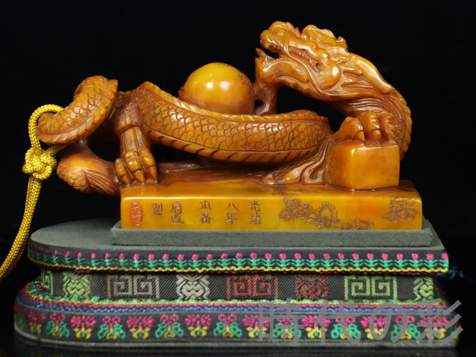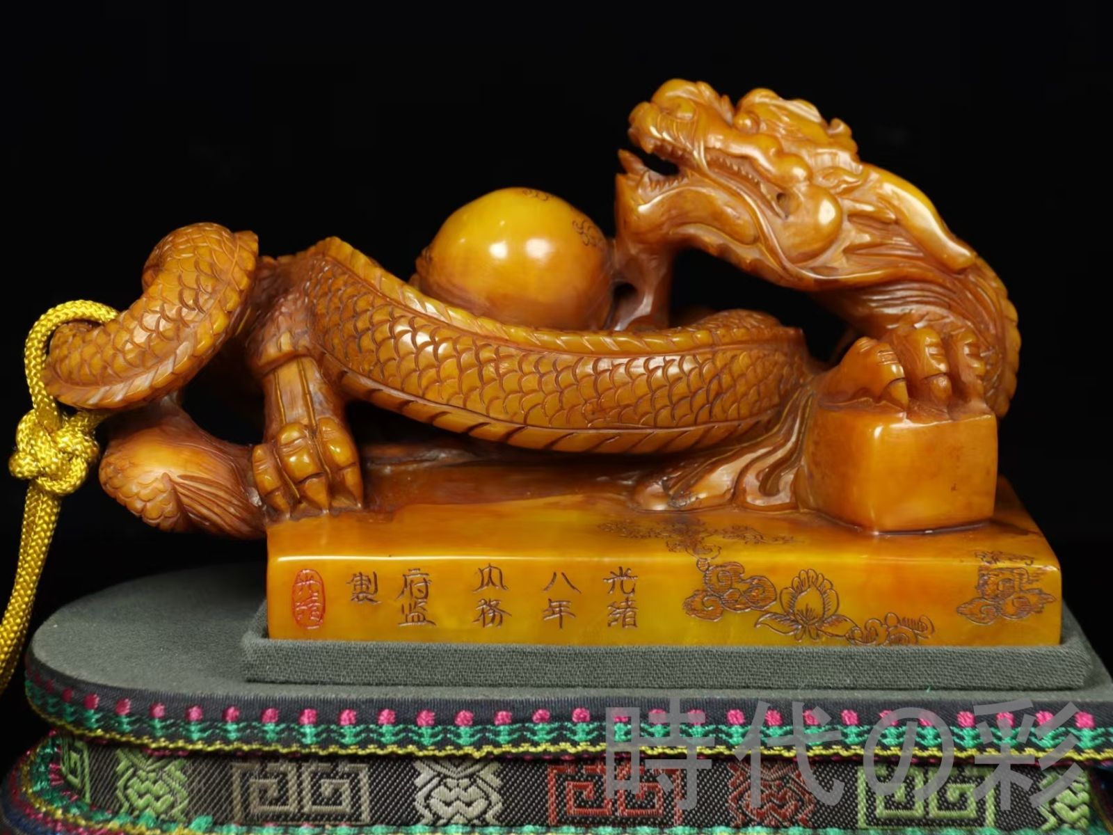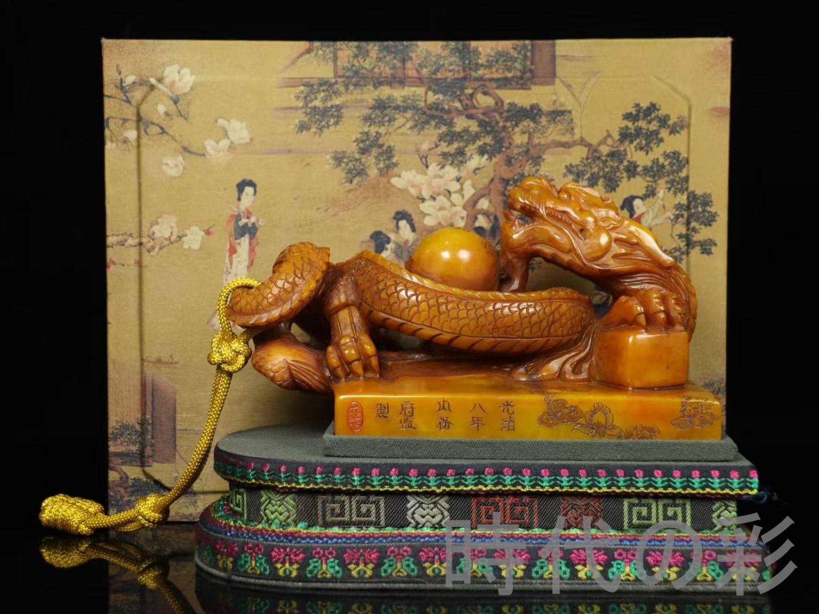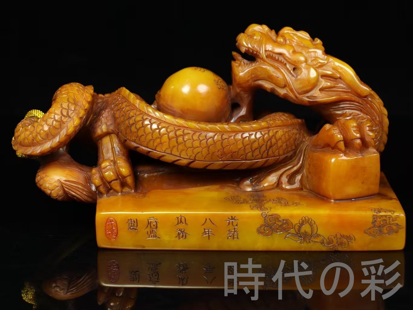 寿山石,光緒,龍印章,御制,工芸品,收藏,,細密彫,手彫り,精工細作,天然賞石擺件,置物,賞物,旧蔵品,名家,在銘,古玩,彫刻